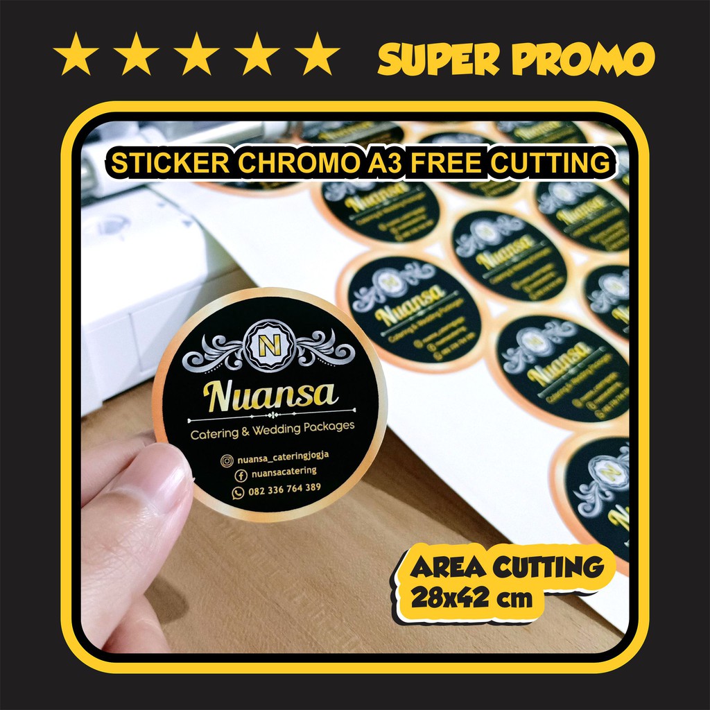 [TERMURAH PRODUCT STICKER ] Cetak Stiker Label CHROMO Non Waterproof SUDAH CUTTING Toko Olshop Kue Bakery Parfum Buah Toples Lebaran Snack