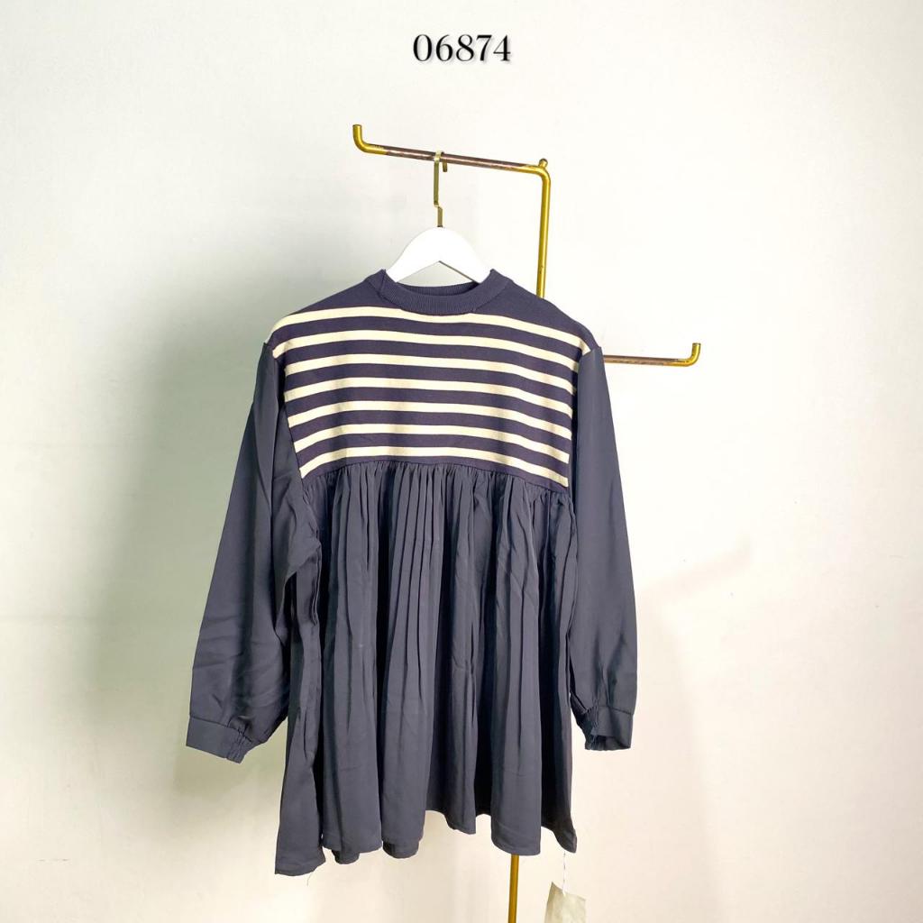 06874 BLOUSE KOMBINASI TWO IN ONE RAJUT MIX PLEADS RUMPLE BABYDOLL PREMIUM LENGAN PANJANG WANITA BASIC BLOUSE SLIKY KEKINIAN WANITA VARIASI MODEL PLISKET RUMPLE KOMBINASI RAJUT GARI SALUE PREMIUM LENGAN BALON ATASAN OVERSIZE WANITA BLOUSE BABYDOLL