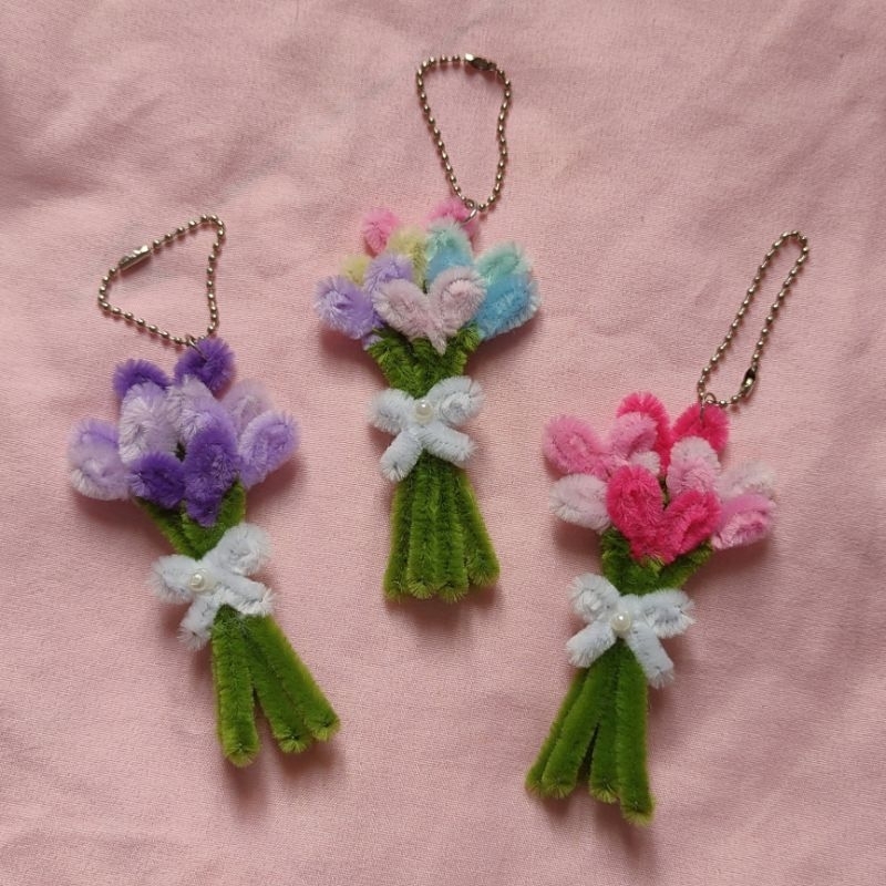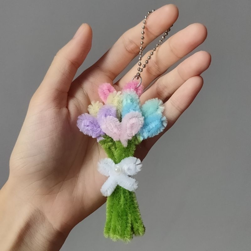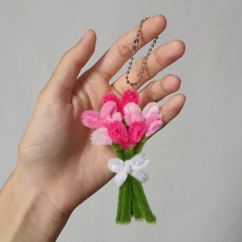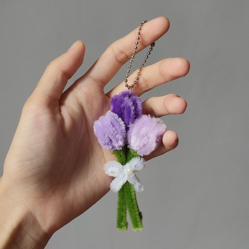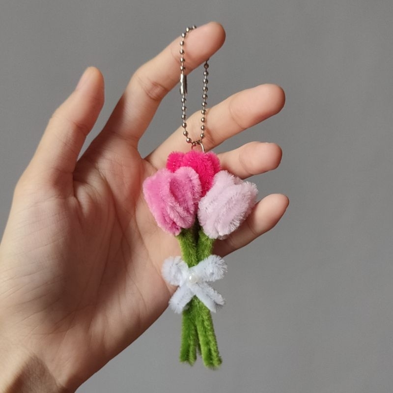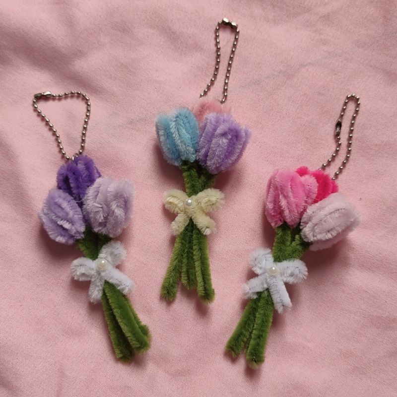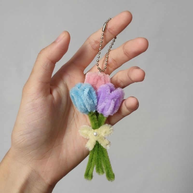 Gantungan Kunci Kawat Bulu Bunga Tulip - Keychain Kawat Bulu