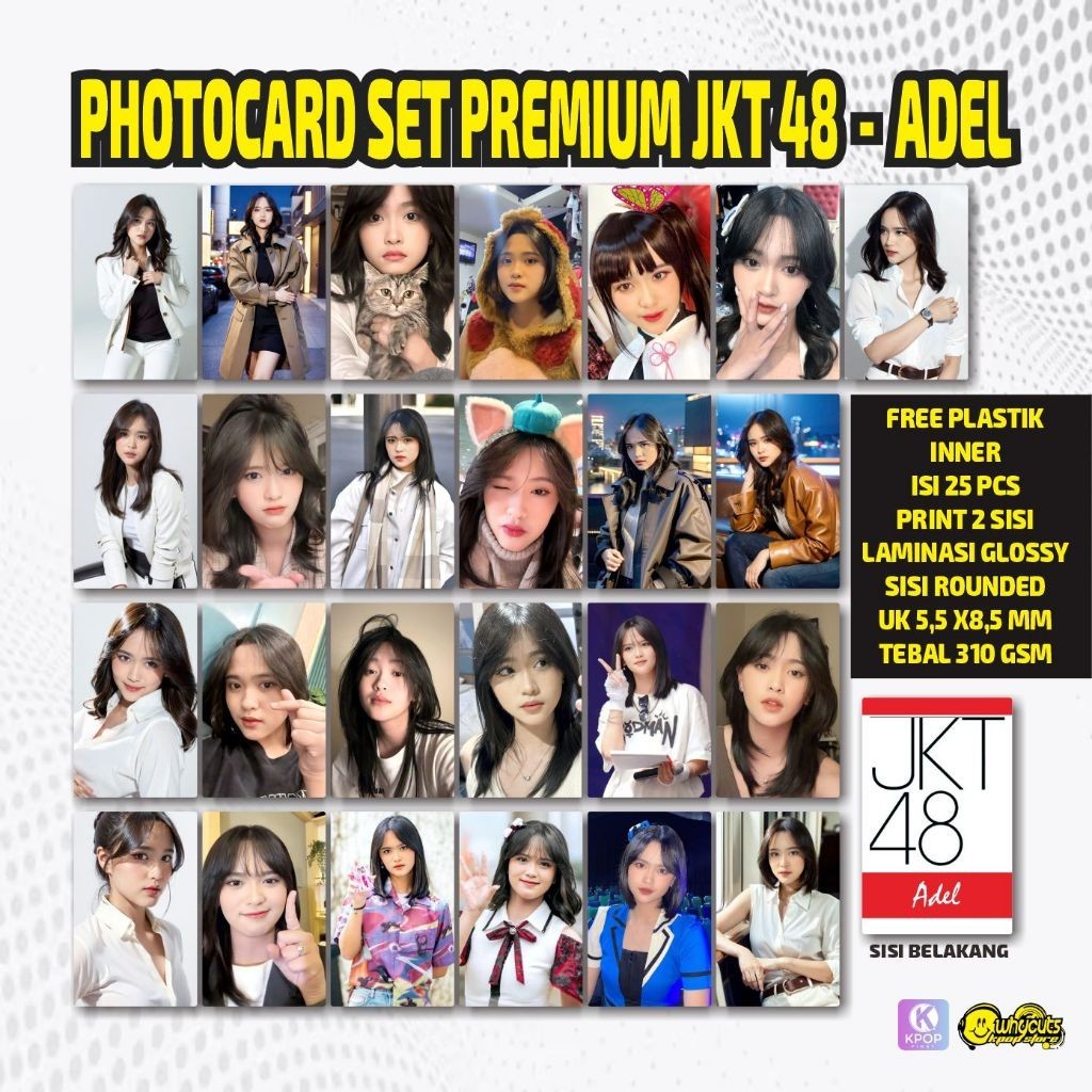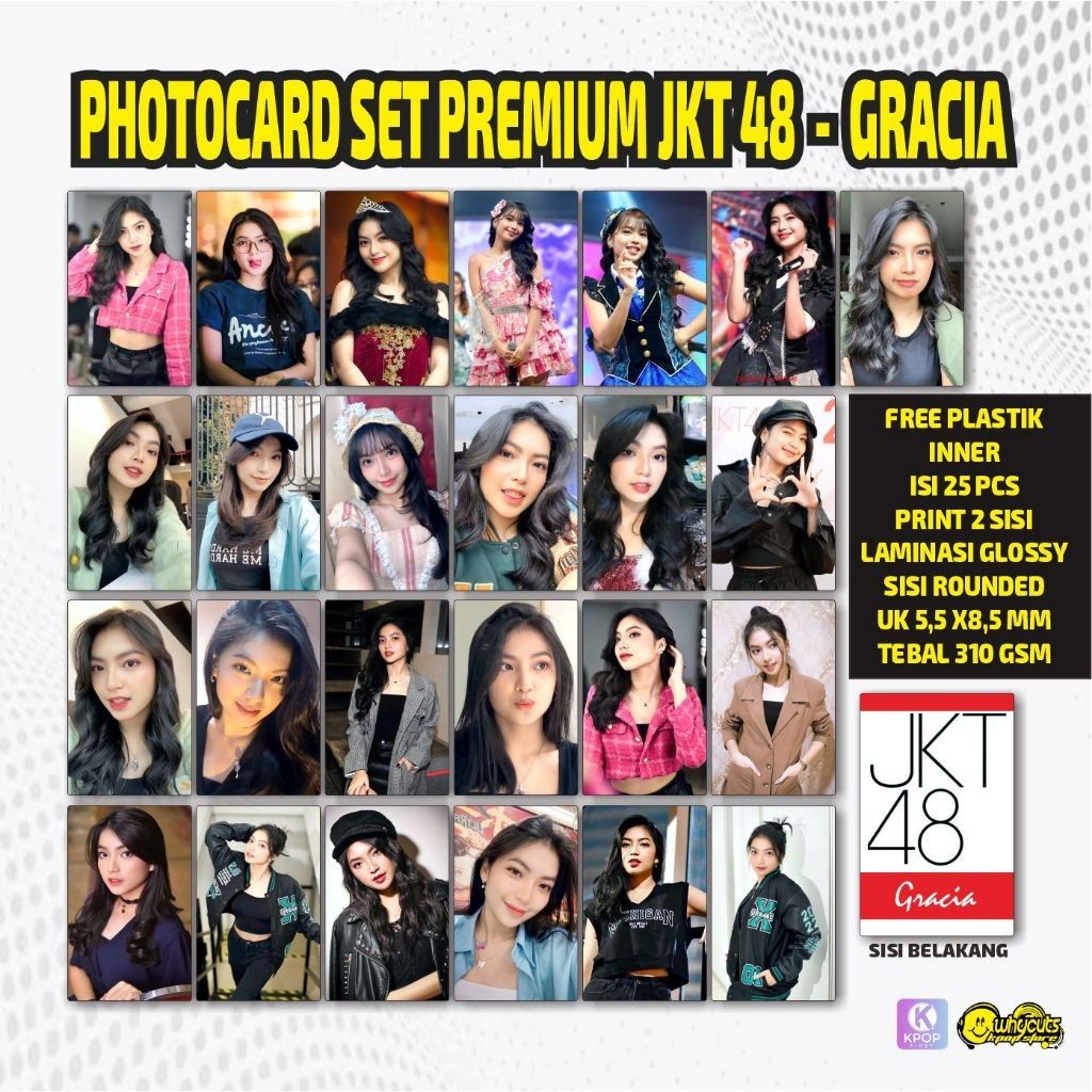 PC Photocard Isi 25Pcs JKT48 Zee Freya Adel Gracia Print 2 sisi Laminasi glossy anti air Shani Marsha Christy Tebal Tidak Luntur free inner sleeve