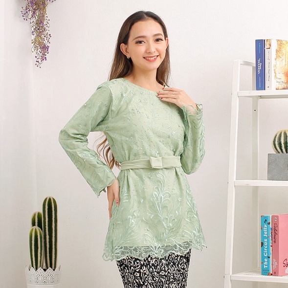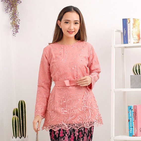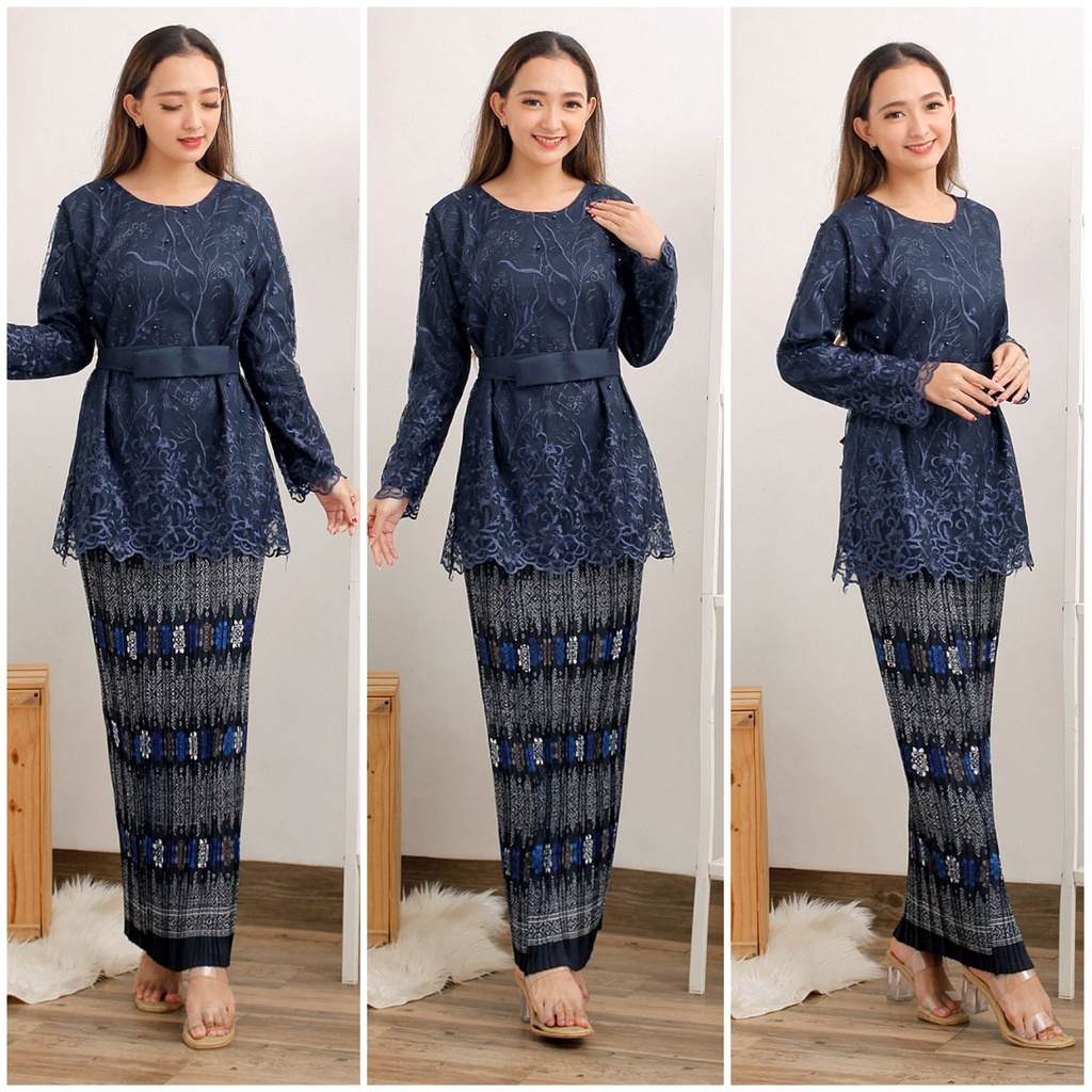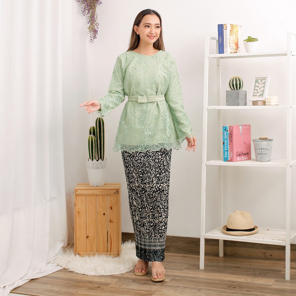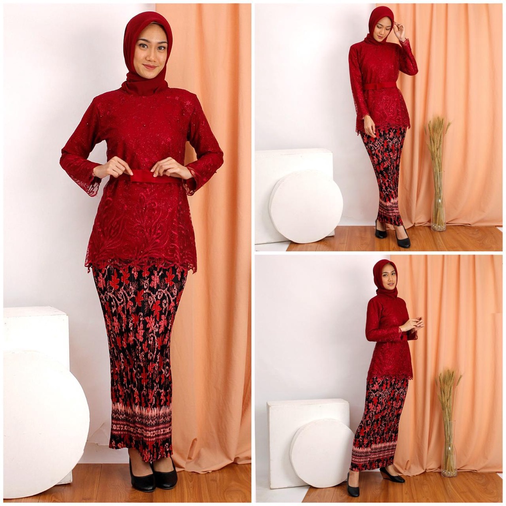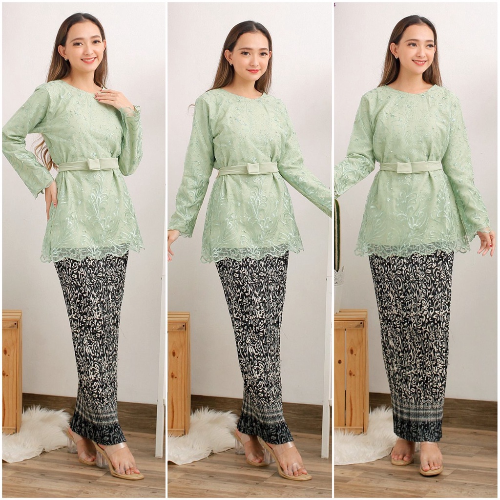(DIJAMIN REALPICT) Kebaya Manohara Tile Bordir Glitter + Mutiara Tunik Wisuda Kondangan Rok Plisket
