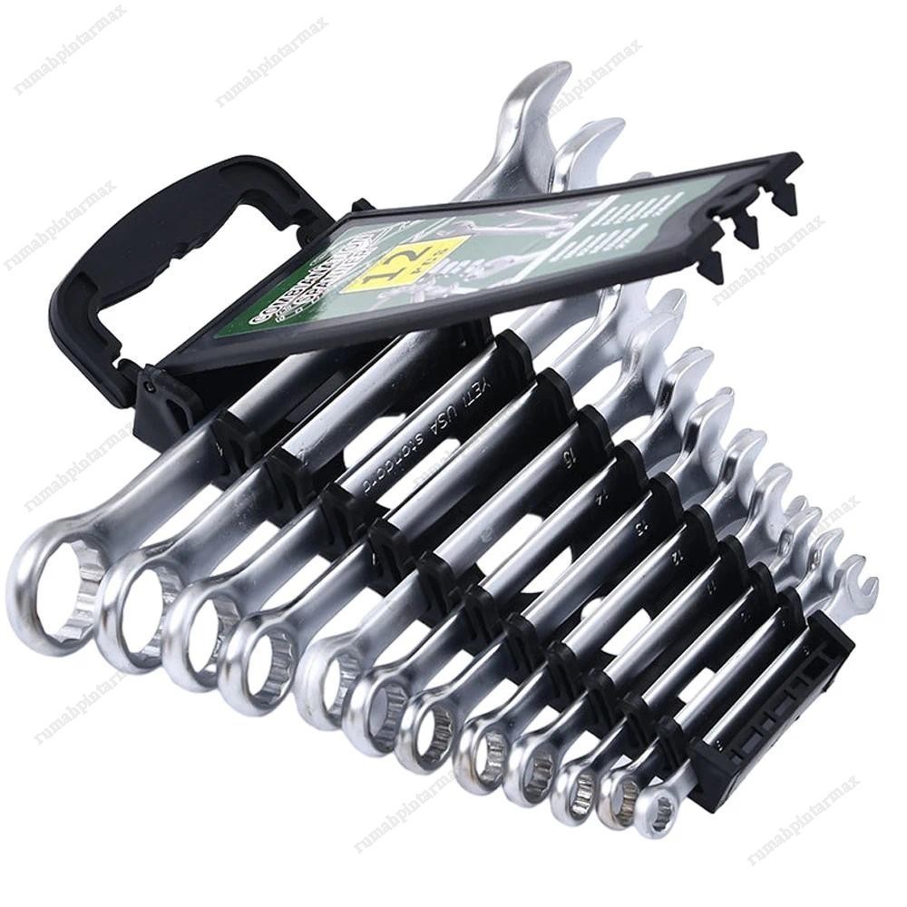 8 Pcs Kunci Ring Pas Rachet Set 6-22mm Kombinasi Kunci Ratchet Set Bahan Chrome Vanadium Multifungsi Kunci Ring