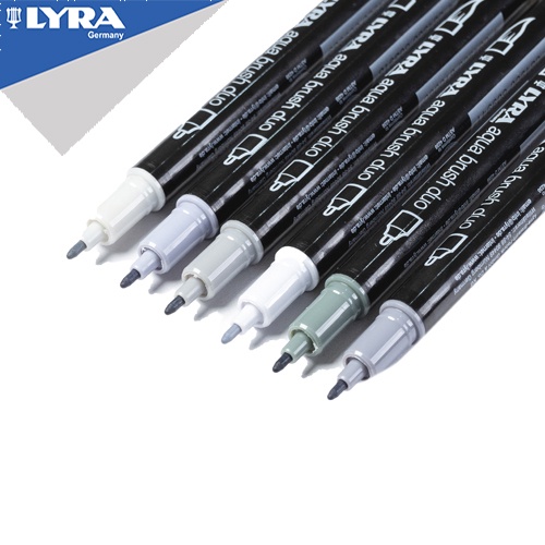Lyra Spidol Cat Air 2 Ujung / Brush Pen / Watercolor Marker Aqua Brush Duo Set - Grey Tones