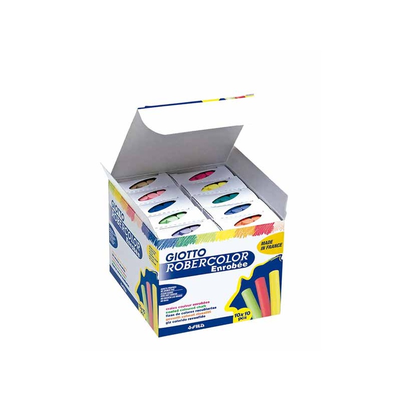 Giotto Kapur Tulis Warna-Warni Premium Robercolor Enrobee White Isi 100 Pcs - Kuat, Aman Untuk Kulit
