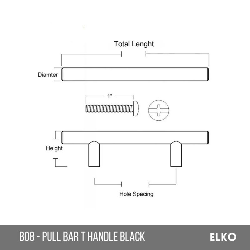 B08 Pull Bar T Handle Black Tarikan Laci Hitam Gagang Pintu Lemari