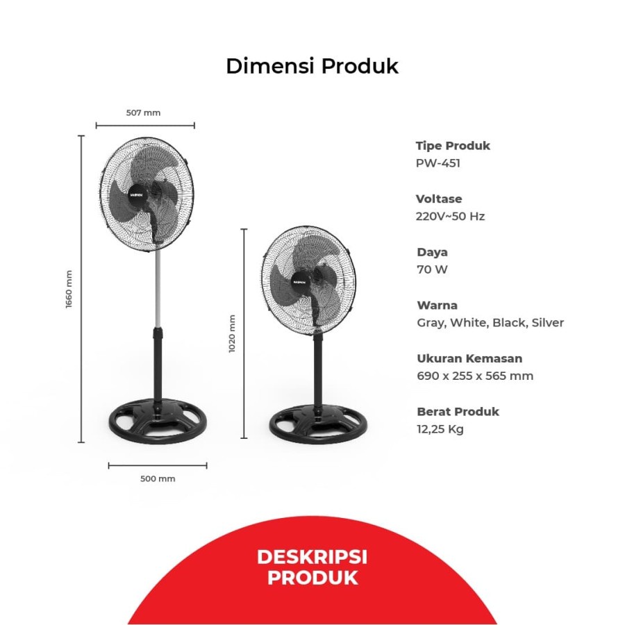 MASPION KIPAS ANGIN BERDIRI POWER FAN PW 451 3IN1 18 INCH/PW451/PW-451/100% ORIGINAL/GARANSI RESMI