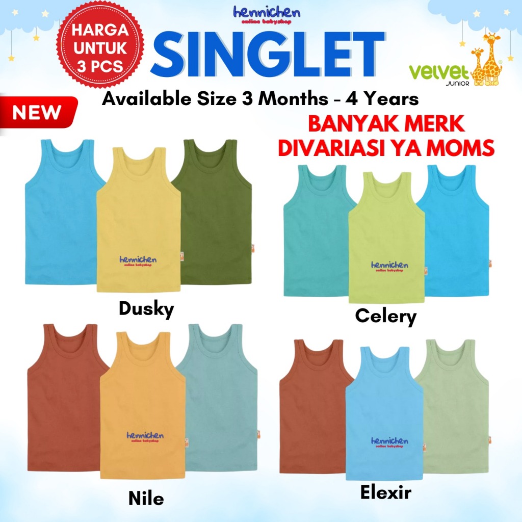 3 PCS velvet Junior Kaos Dalam Bayi singlet kutung BAJU ANAK / BAJU BAYI NB/XS/S/M/L/LB/2/3/4/5