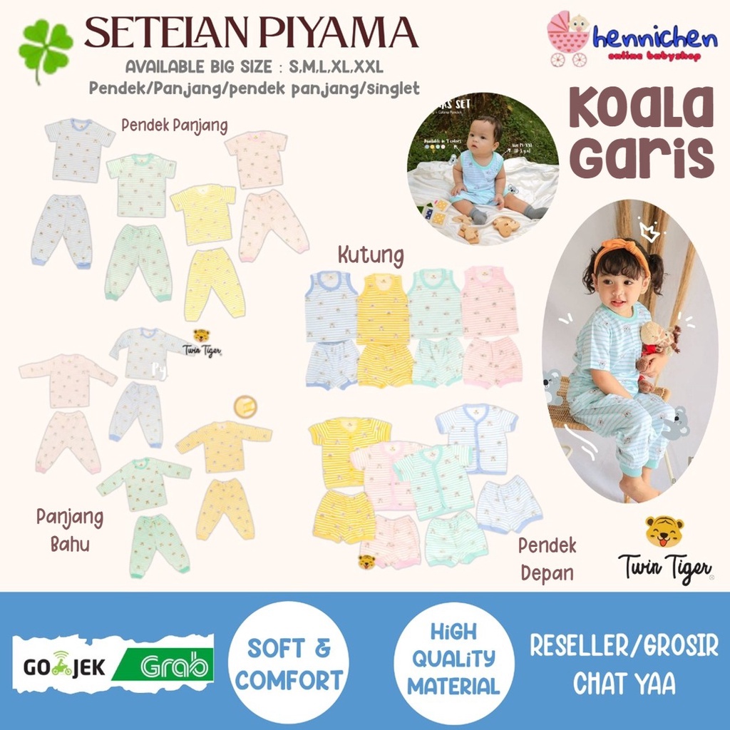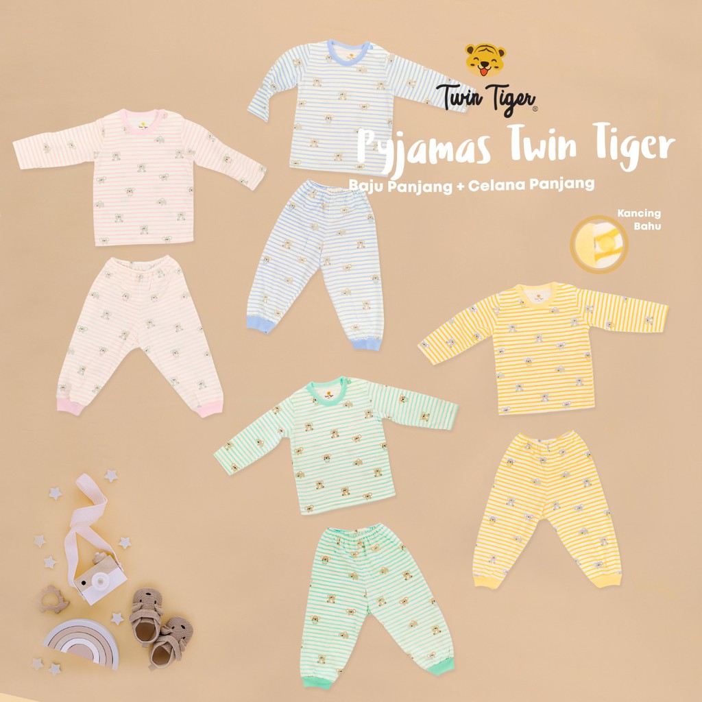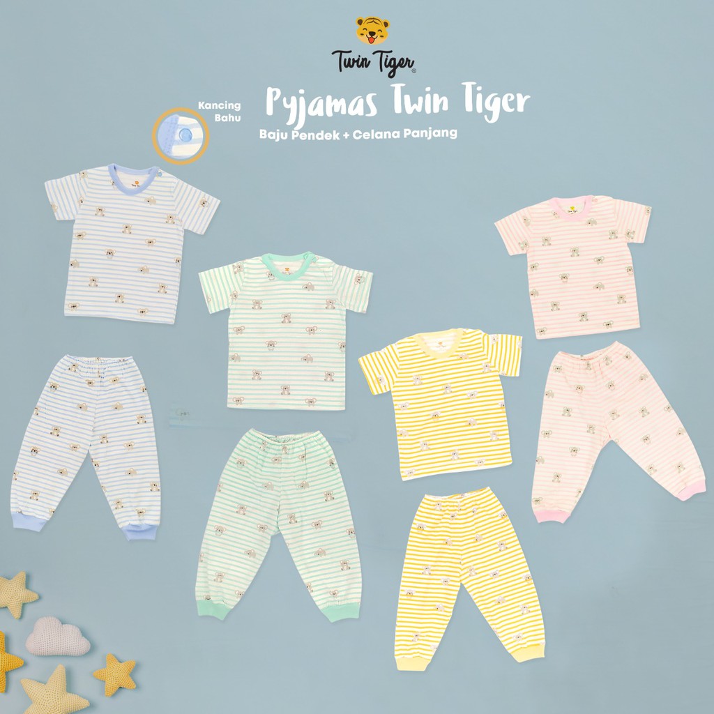 TWIN TIGER SETELAN PIYAMA PENDEK / PANJANG / PENDEK PANJANG / SINGLET PREMIUM/KOALA GARIS / TWIN BERUANG