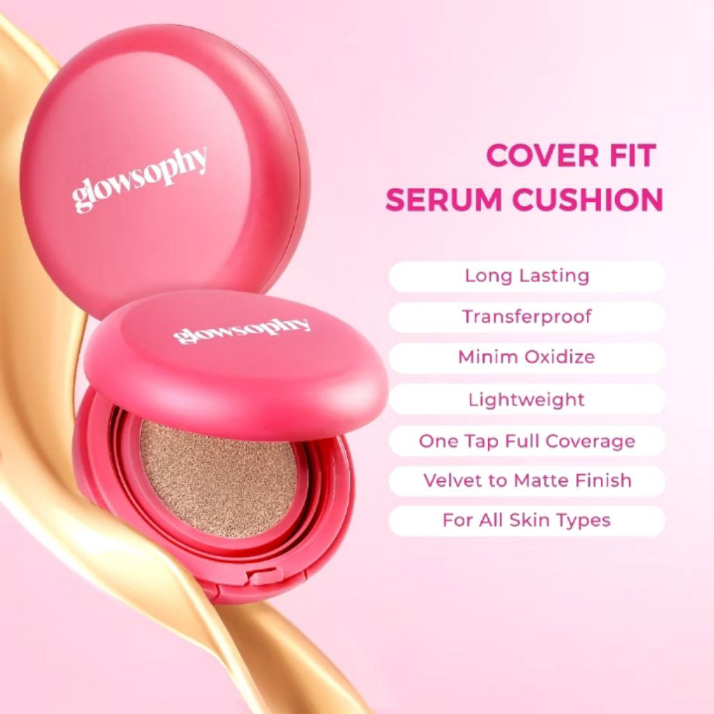 GLOWSOPHY COVER FIT SERUM CUSHION SHADE MAPLE DAN PINE CUSHION MURAH VIRAL MAKE UP FLAWLESS