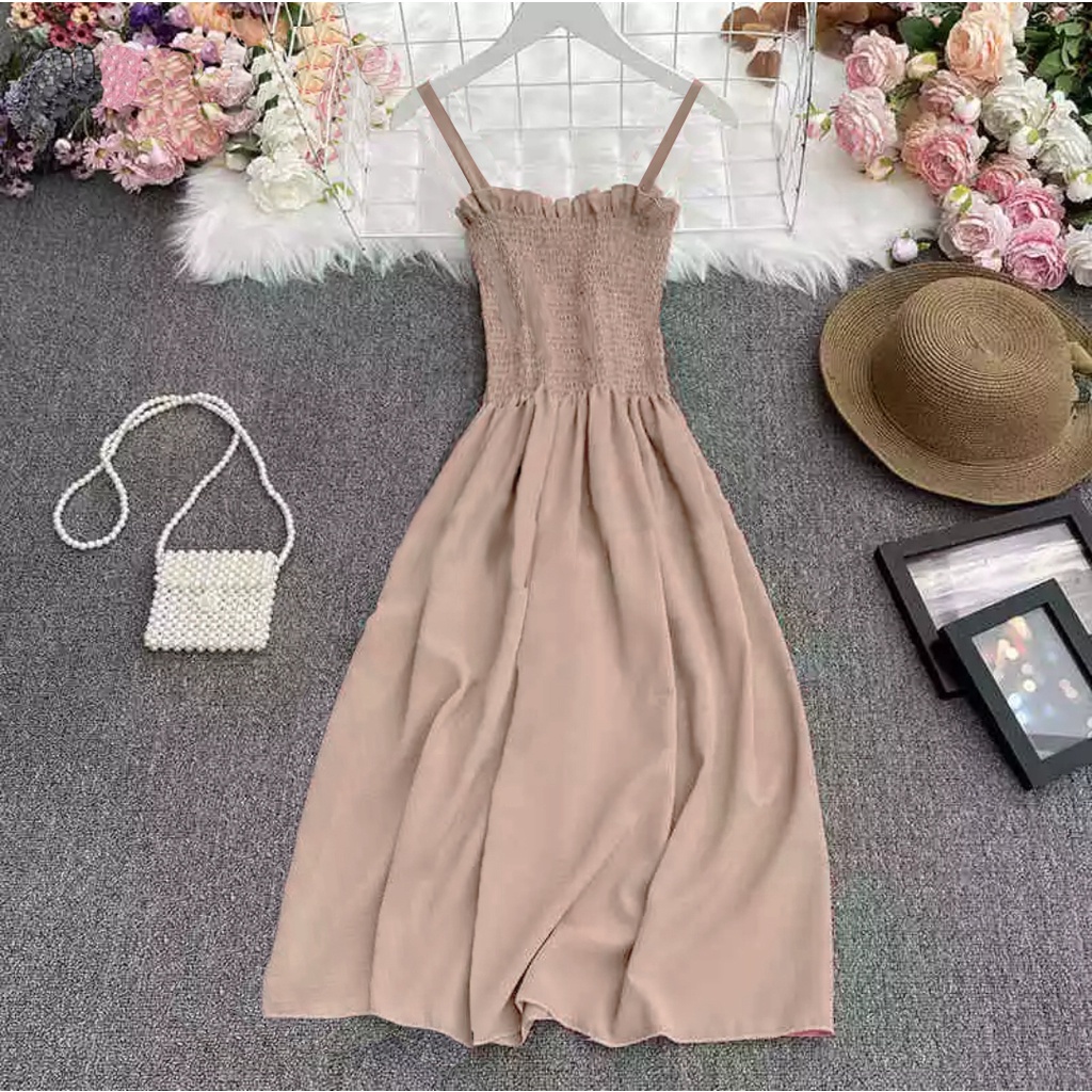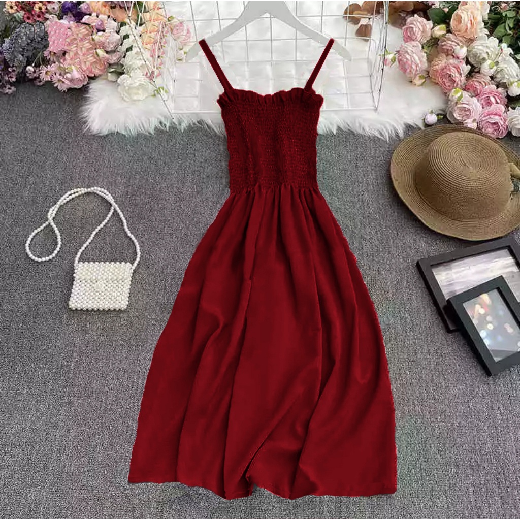 Dress Kerut Tali Panjang Korea Style Bahan Adem 849