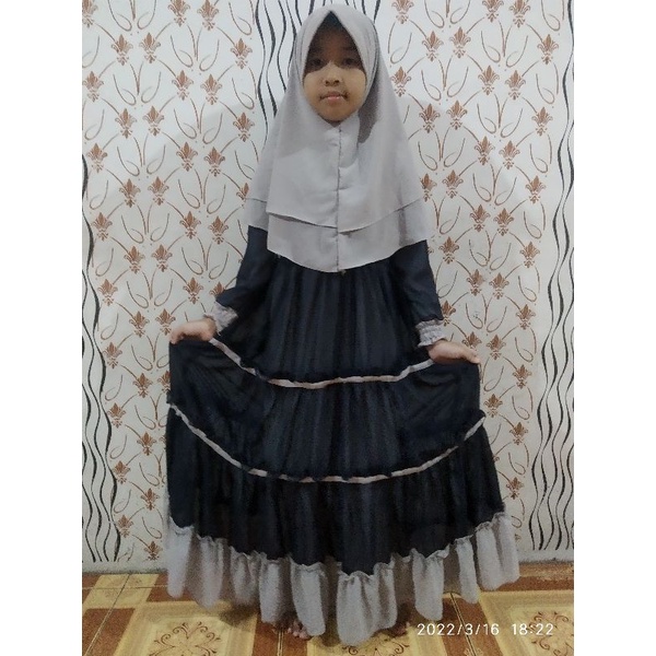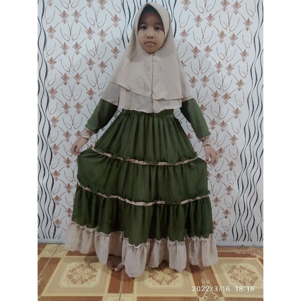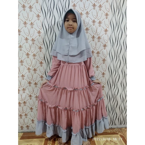Gamis Set Hijab Anak 8 - 11 Tahun - Gamis Ceruty Anak - Gamis Rempel