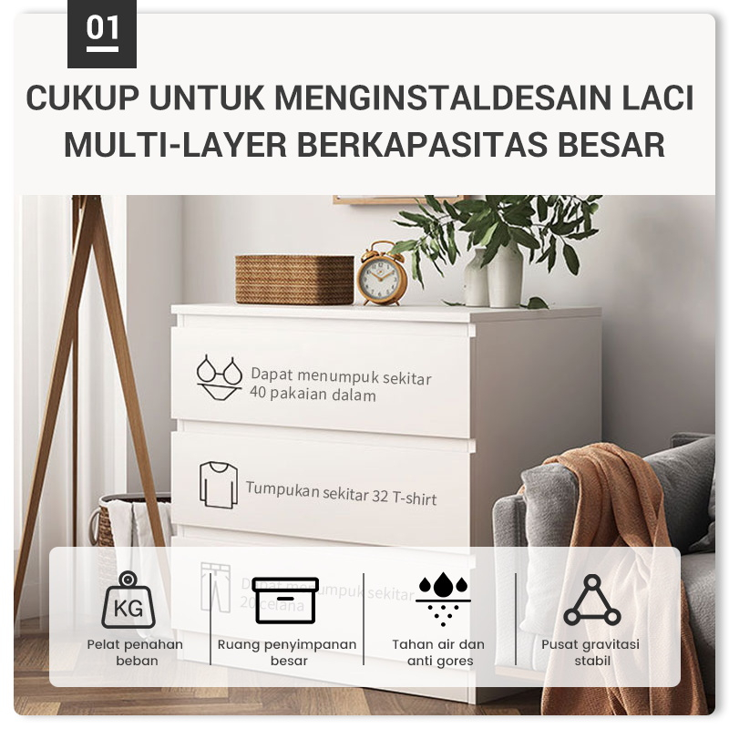 SAKULA lemari laci Chest Drawer 4-Tier Laci Kabinet Pakaian 80*40*130CM(F15A)