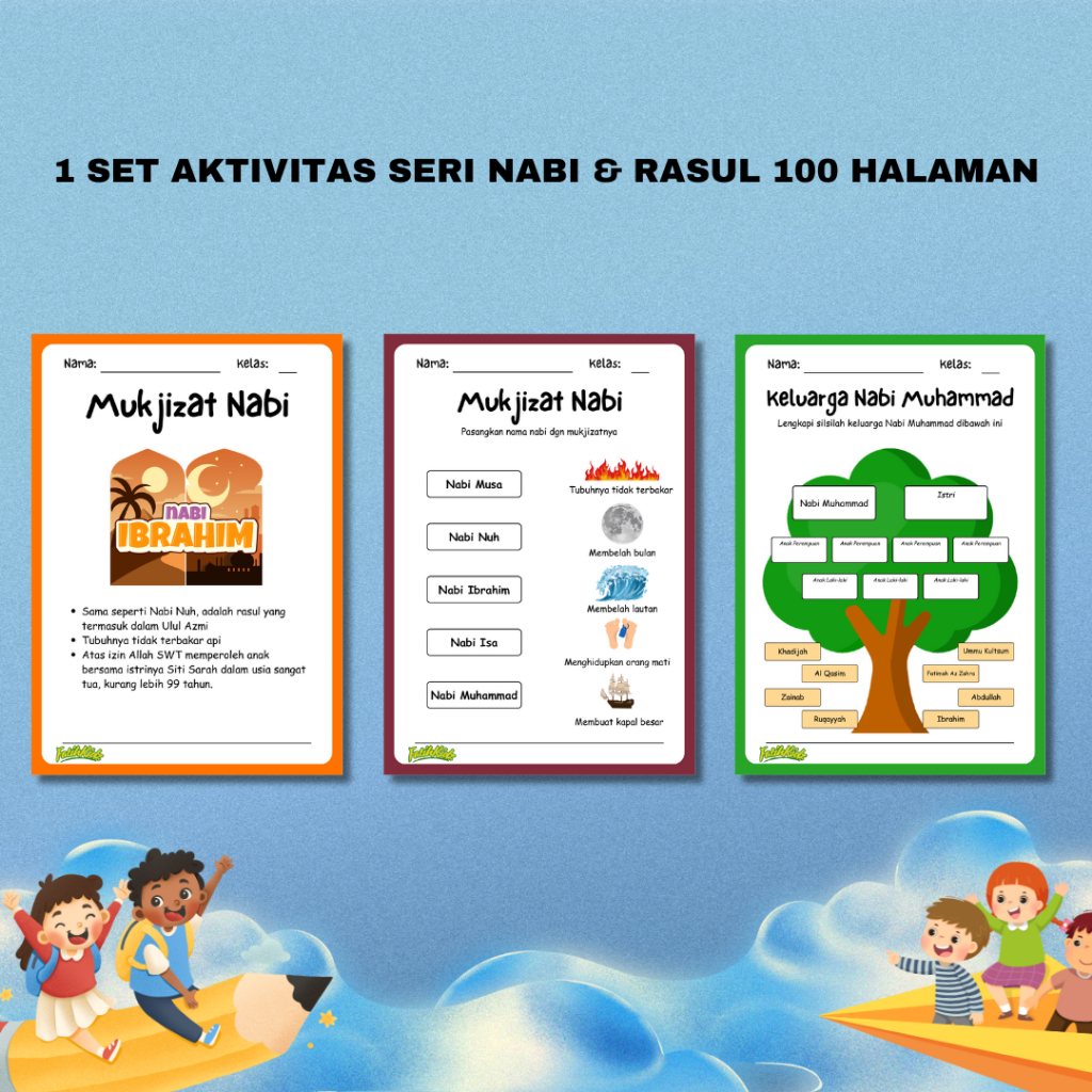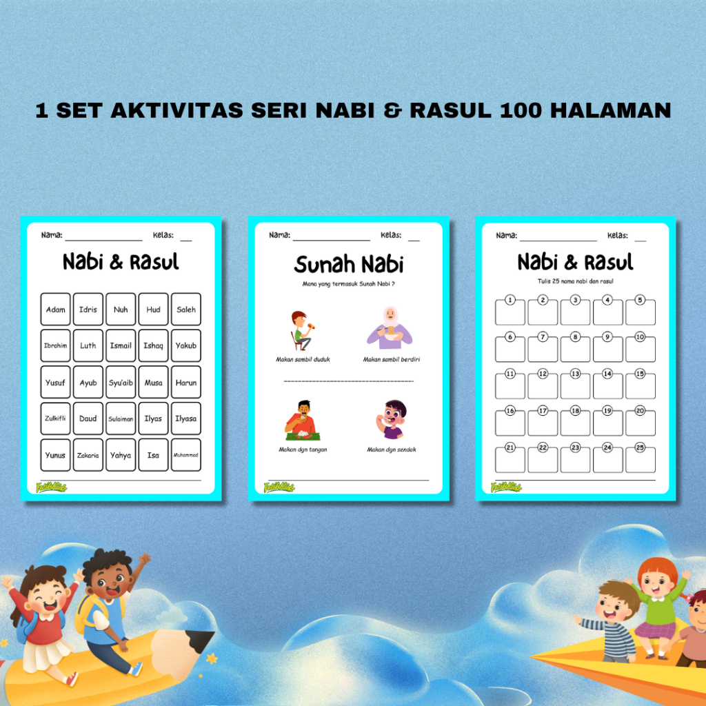 Buku Aktivitas Worksheet untuk Anak Seri Nabi dan Rasul Isi 54 Lembar