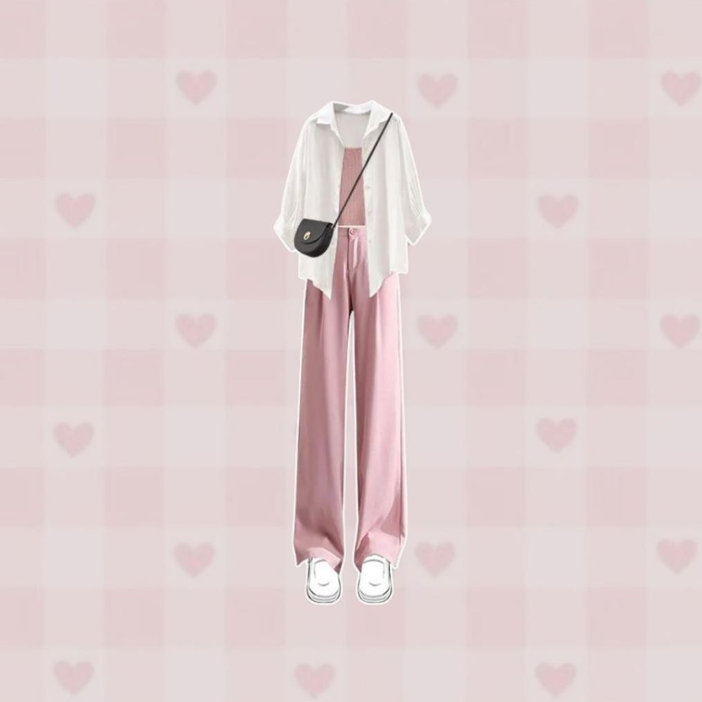 Ready Stock 3In 1 One Set Korean Premium Outfit Korean Stylish Ootd Remaja One Set Setelan Korean Pinky Outfit Cewe Kue One Set - Aa172 Tr24