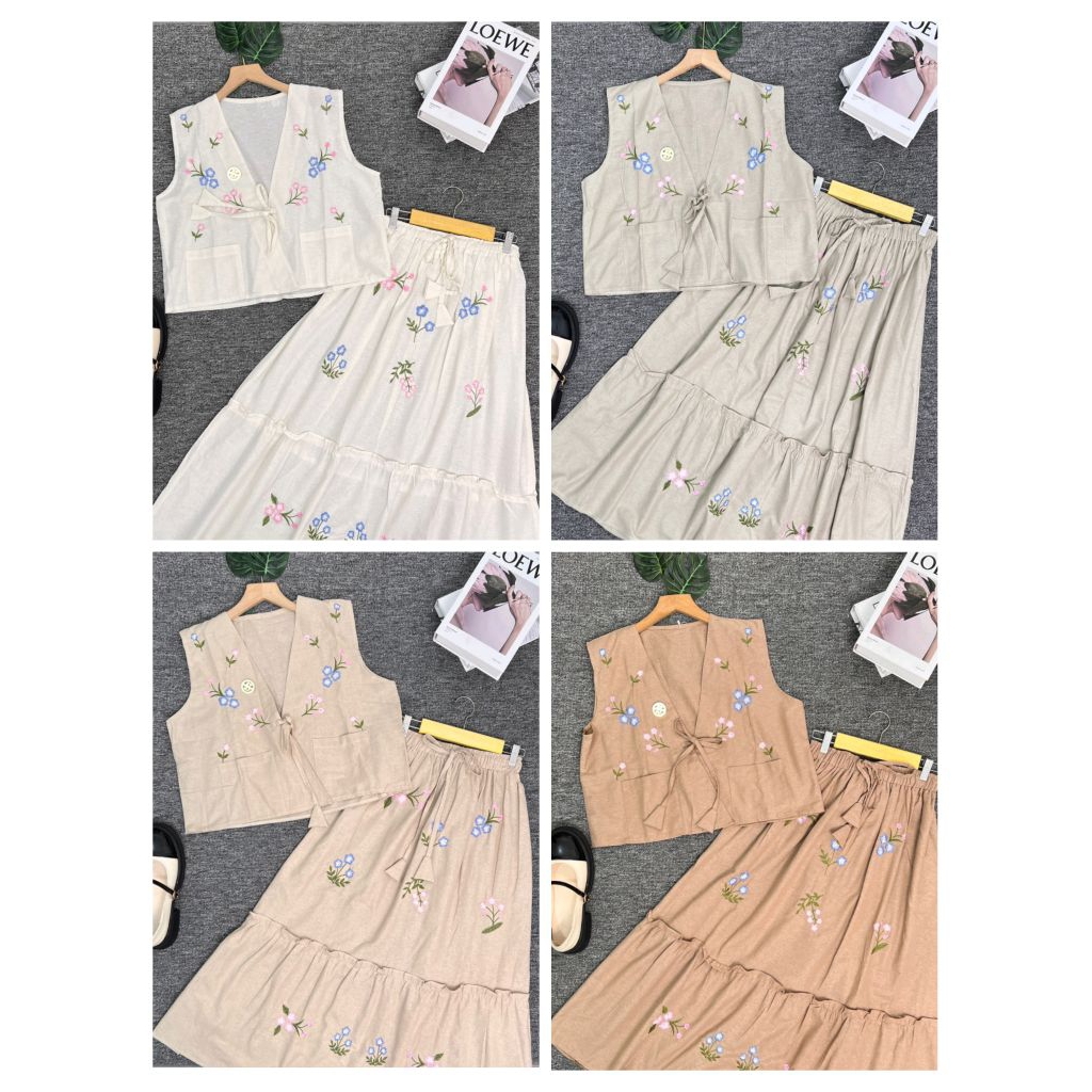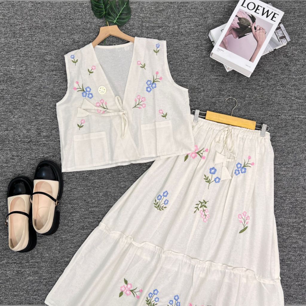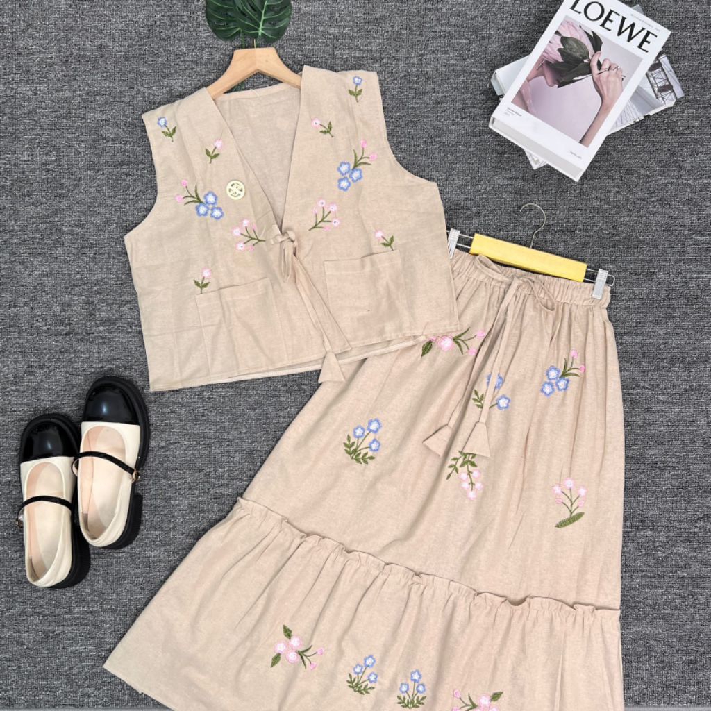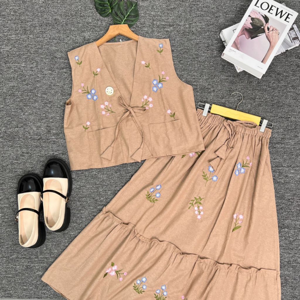 NS STORE|- Setrok Vilmei - Set Rok Linen Bordir Cantik