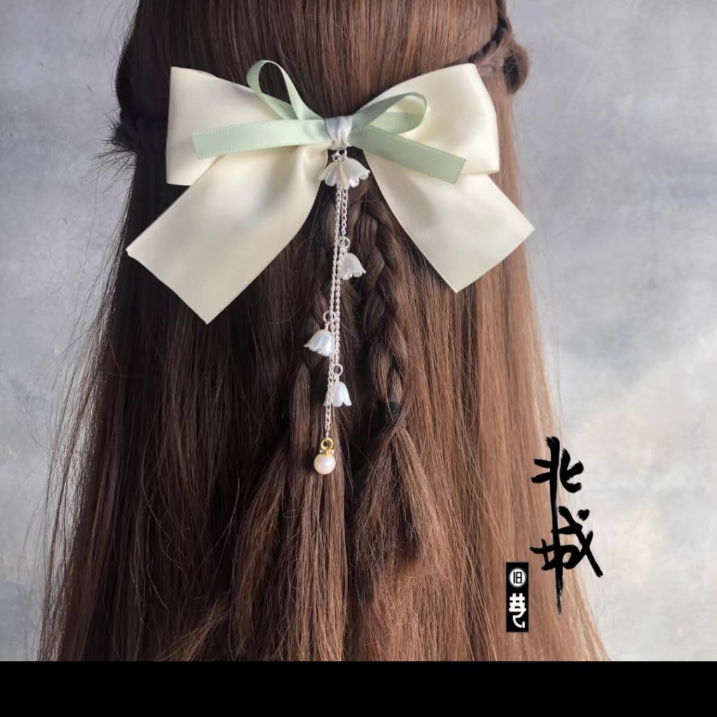 Purely Handmade Elegant Lily of the Valley Flower Hairpin Lady Headdress Bow Tassel Hairpin