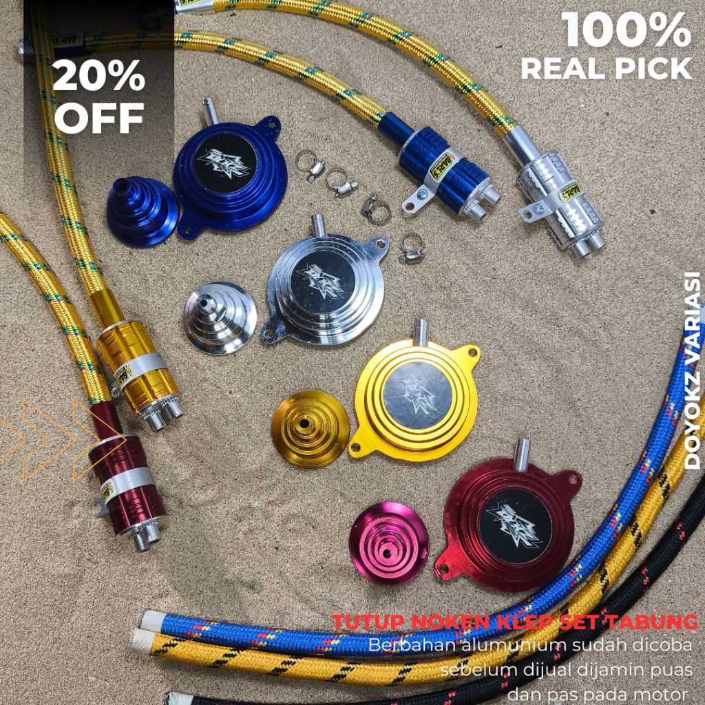 Tabung hawa set tutup oli racing set noken klep set selang tinggal pasang Mio timming pnp Mio sporty Mio soul Mio GT warna PNP Vega Jupiter panjang selang 50 cm dapat 2 selang