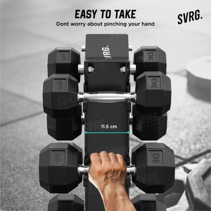 SVRG Paket Hexagonal Dumbbell Black 105kg Satu Set dan Triangle Dumbbell Rack