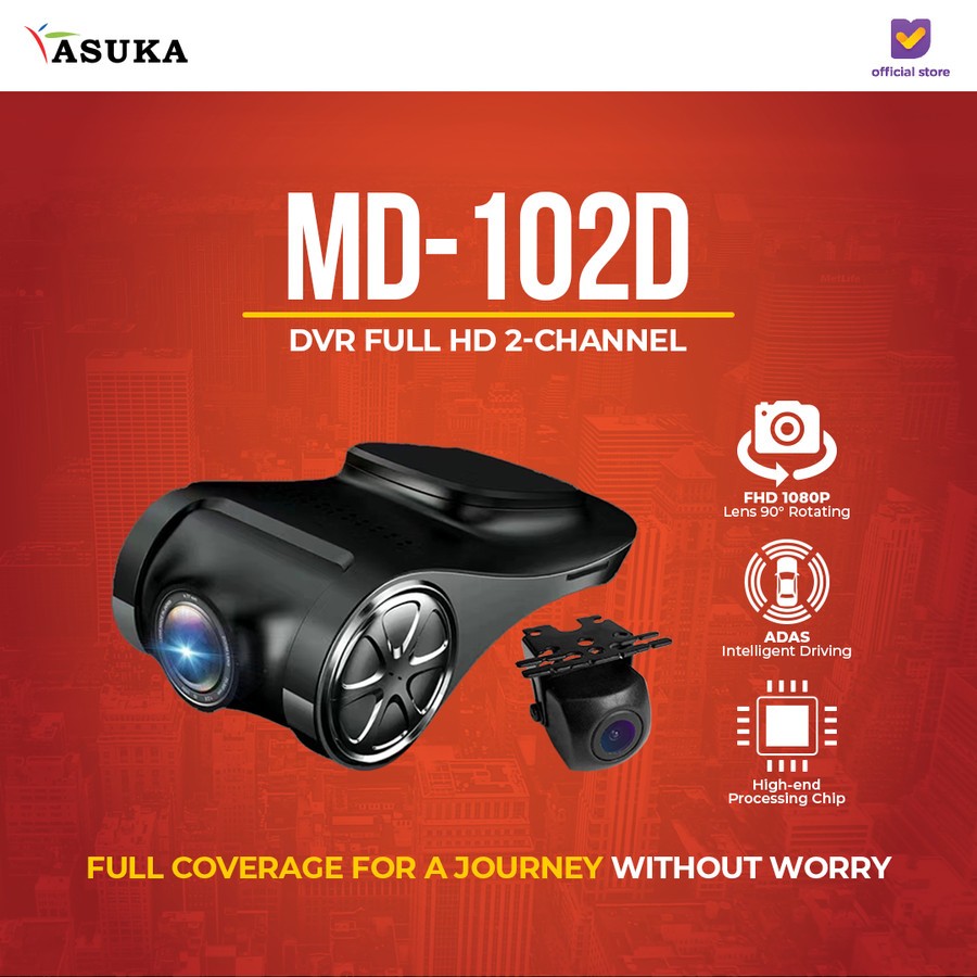 Mirai Vision Dashcam Mobil MD 102D DVR Full HD 2-Channel