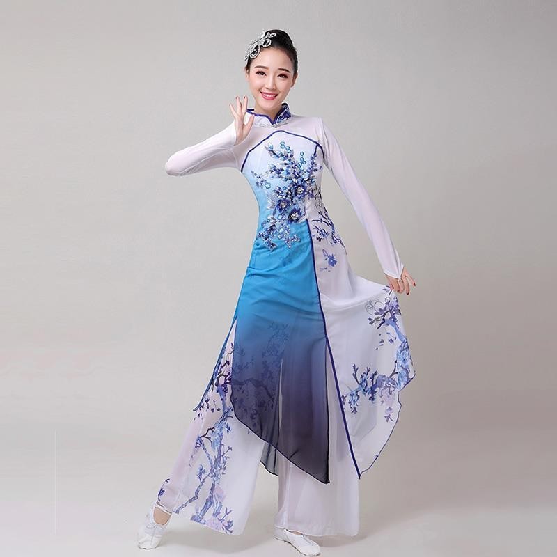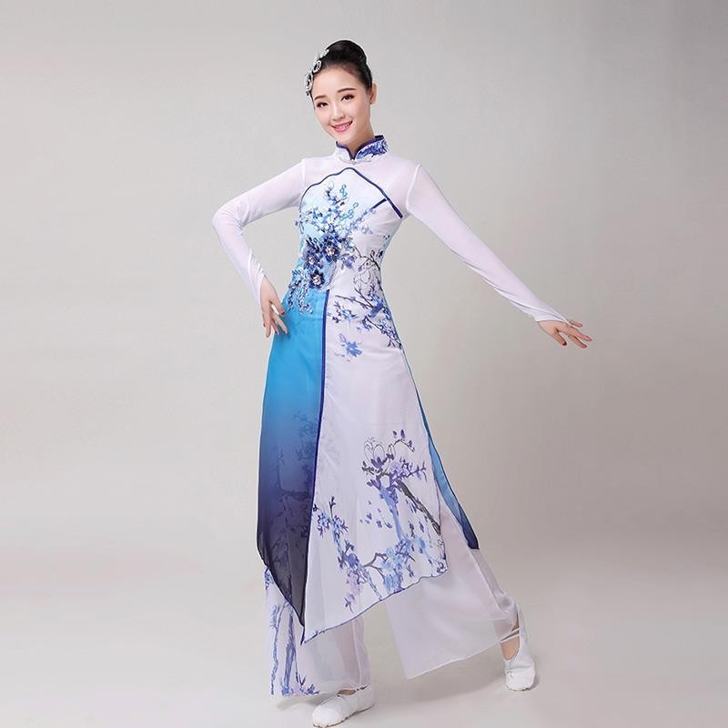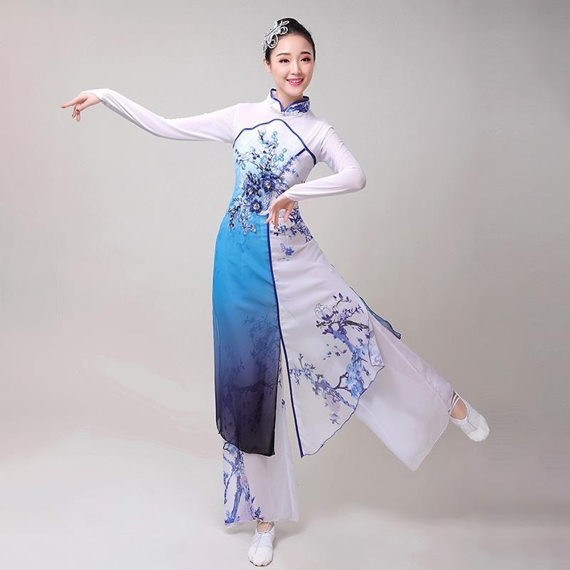 Blue and White Porcelain Classical Dance Costume Female Plum Blossom Chinese Style Gradient Color Dance Performance Costume Adult
