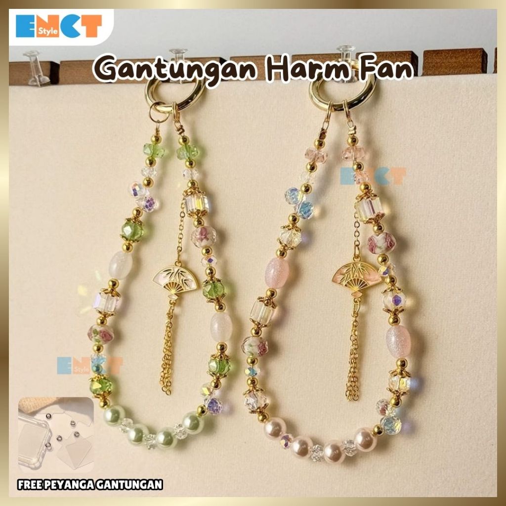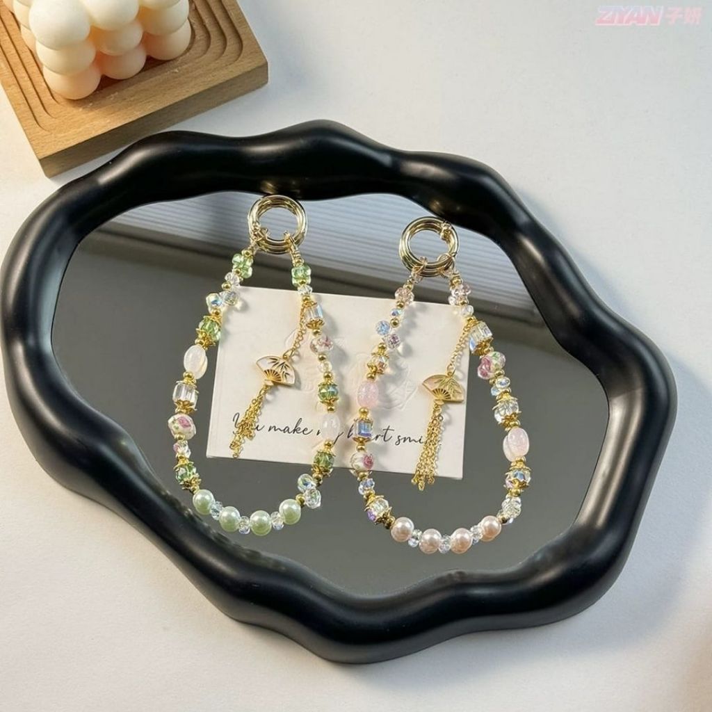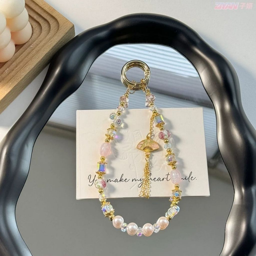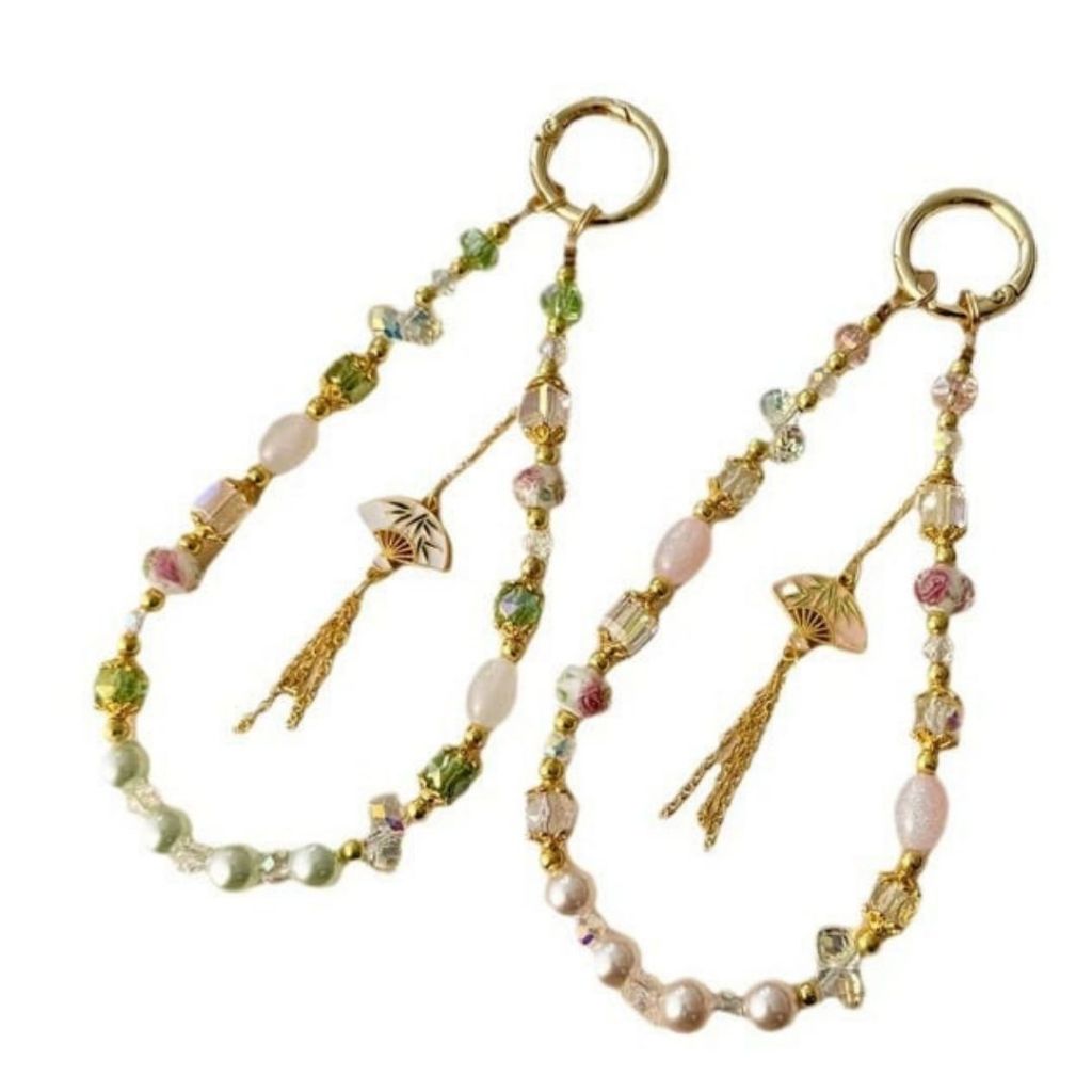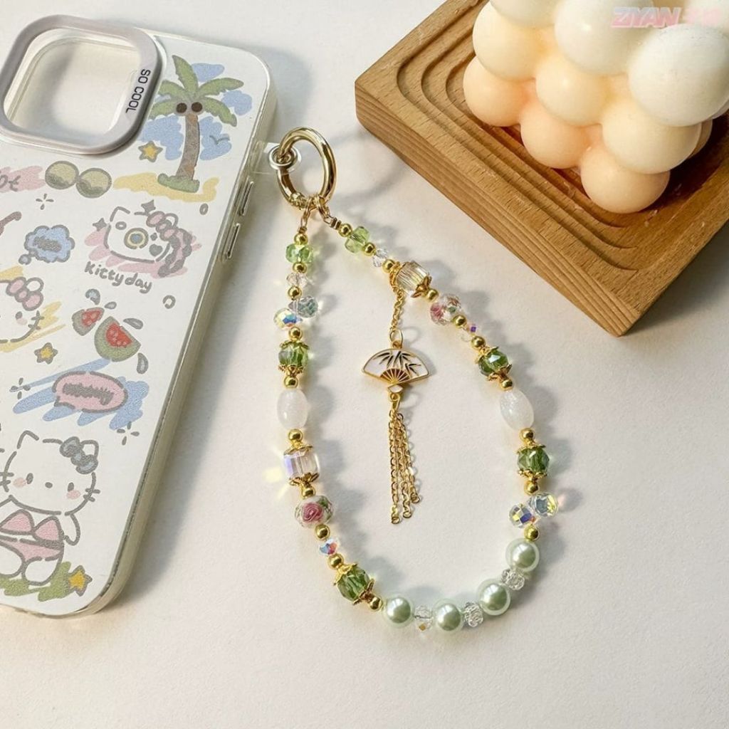 Gantungan Hp Portable Lanyard Phone Aesthetic Lucu Manik Manik Motif Fan Strap Soft Color