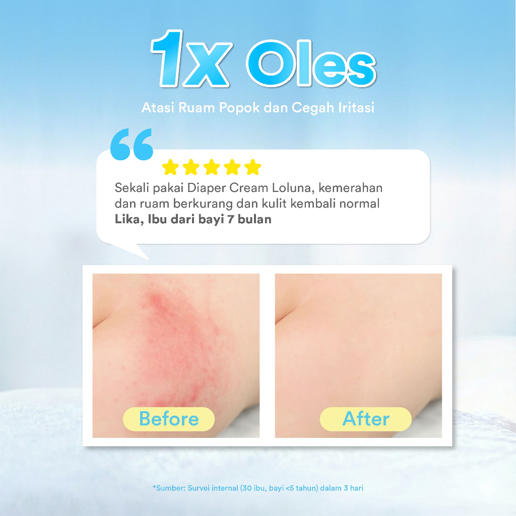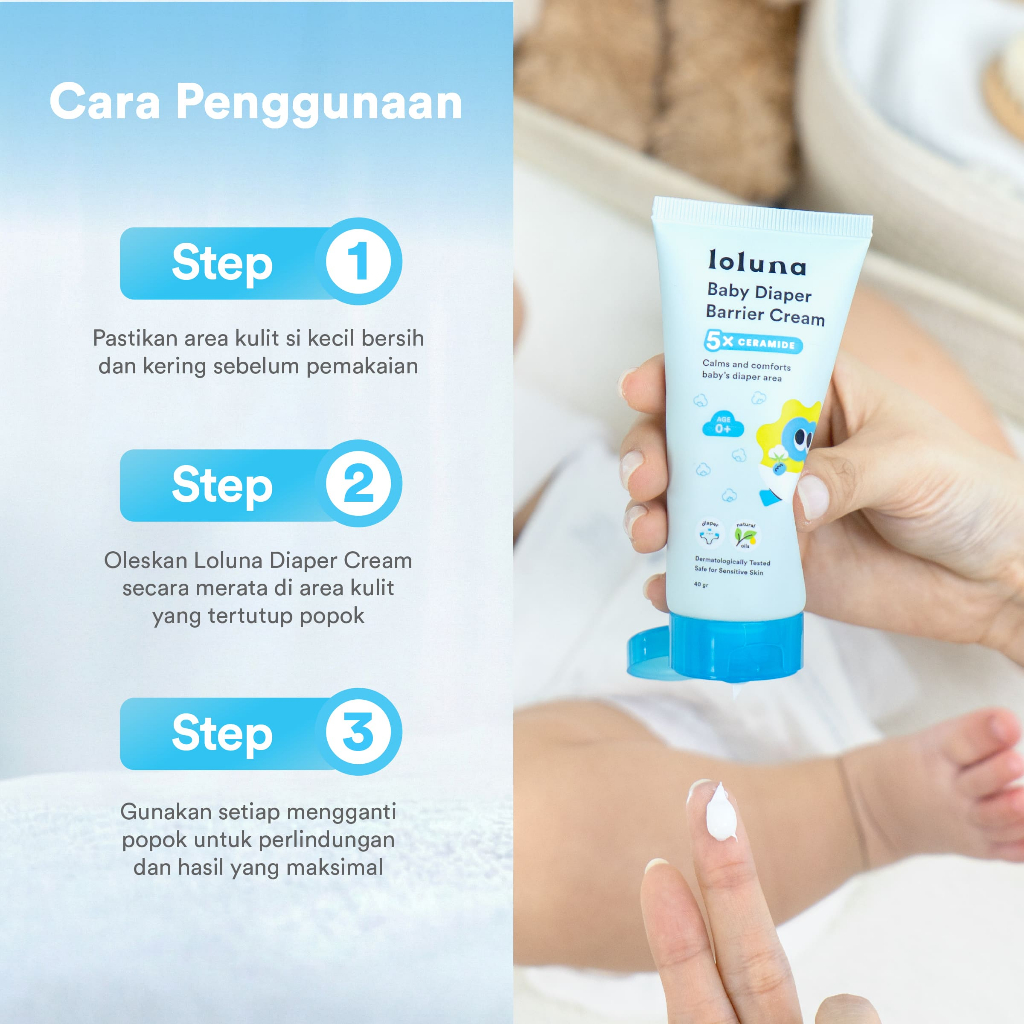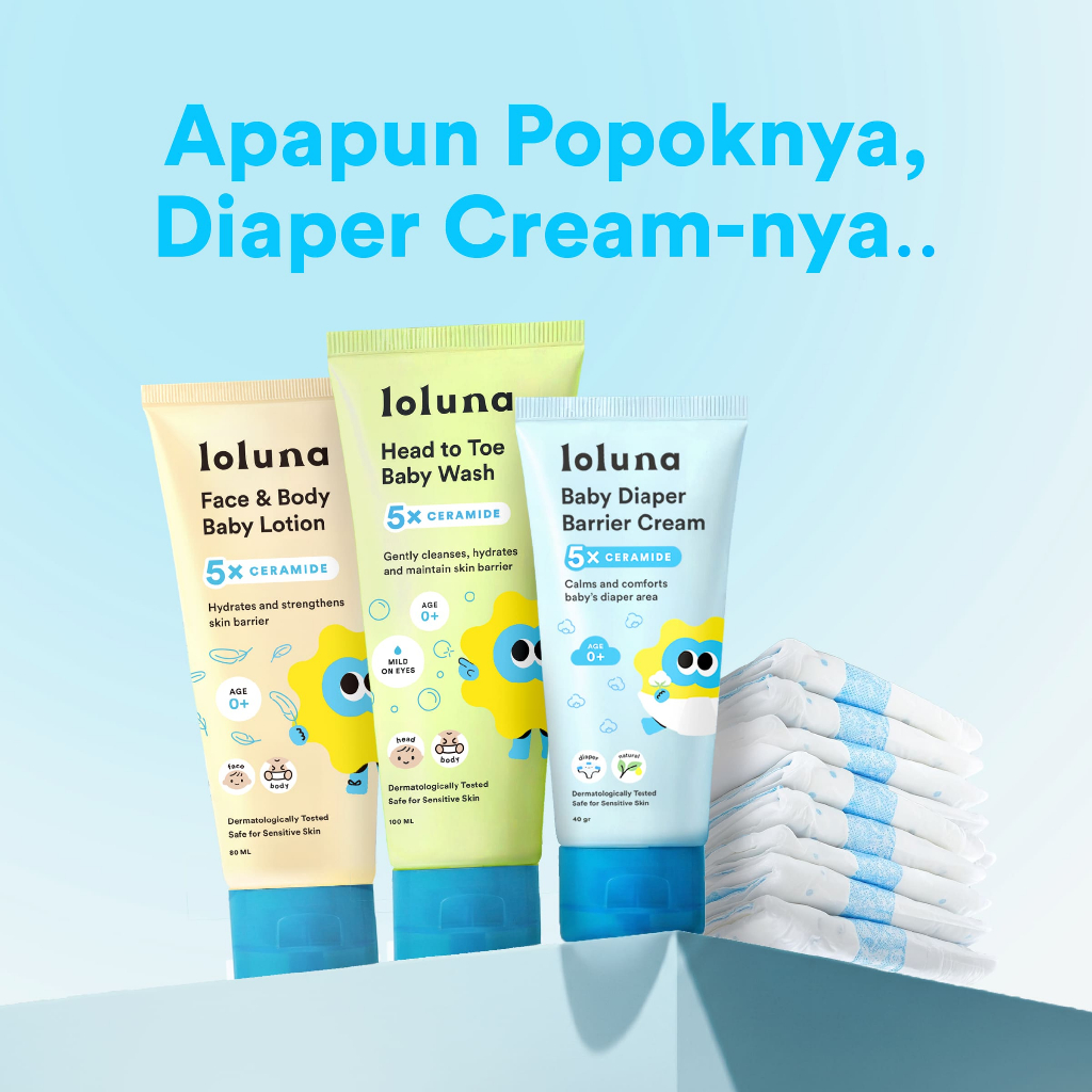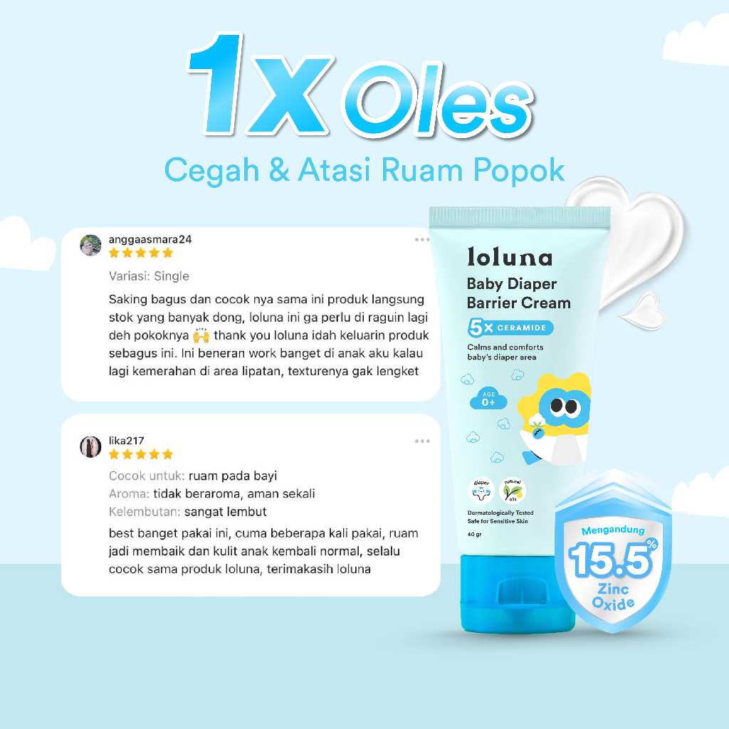 Loluna Baby Diaper Barrier Cream - Krim Popok | Redakan dan Cegah Ruam Popok | 5Xtra Power,Jodohnya Popok | 15.5% Zinc Oxide | 5x Ceramide | X-tra Kering