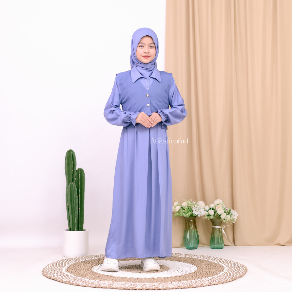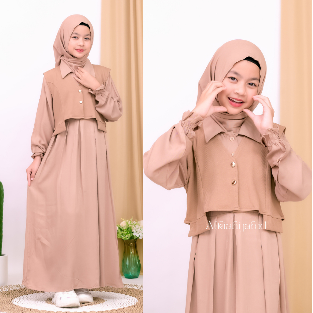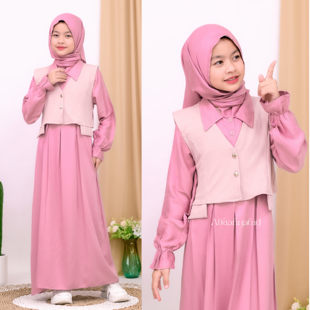 Arumi Dress Kids Gamis Anak Perempuan Bahan RAYON Twill Mix Knit Baju Gamis Set Rompi Knit Viral