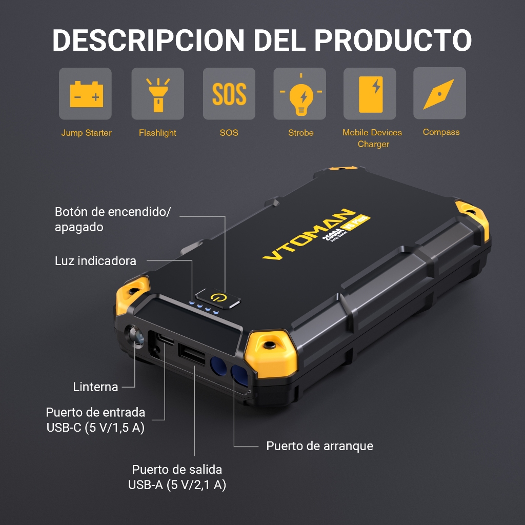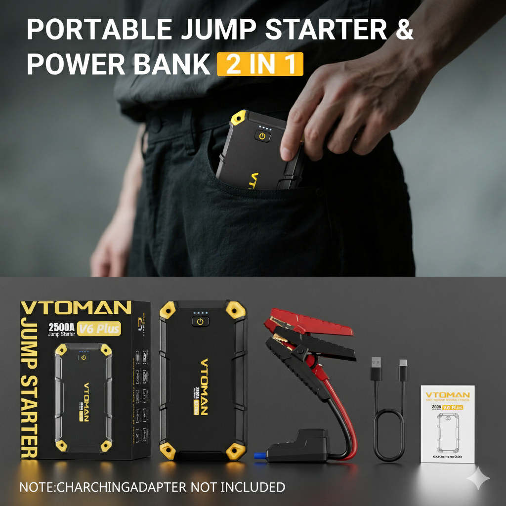 VTOMAN V6 PLUS 10000 mAh Jump Starter Aki Mobil Motor Power Bank Jumper Aki Alat Jamper Aki