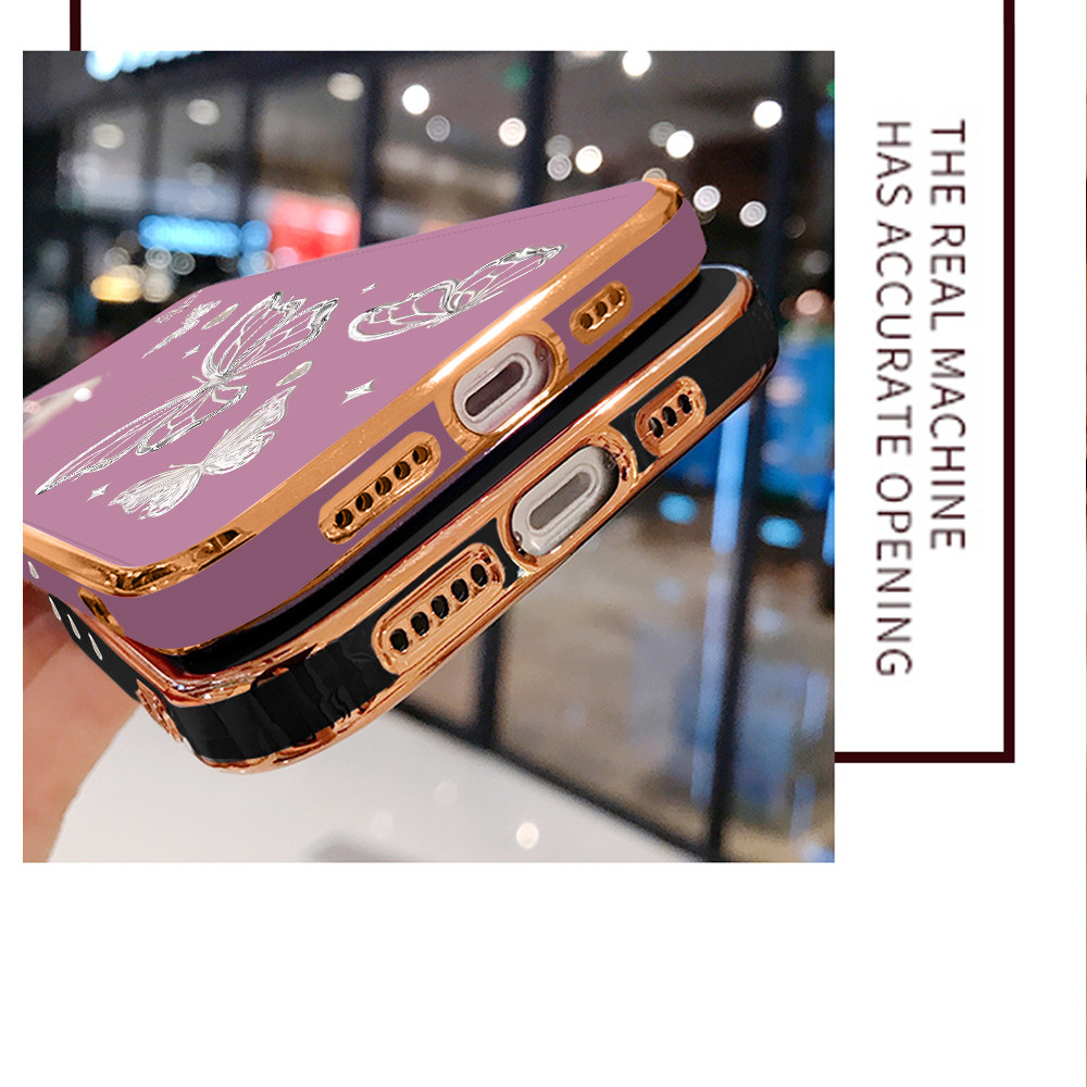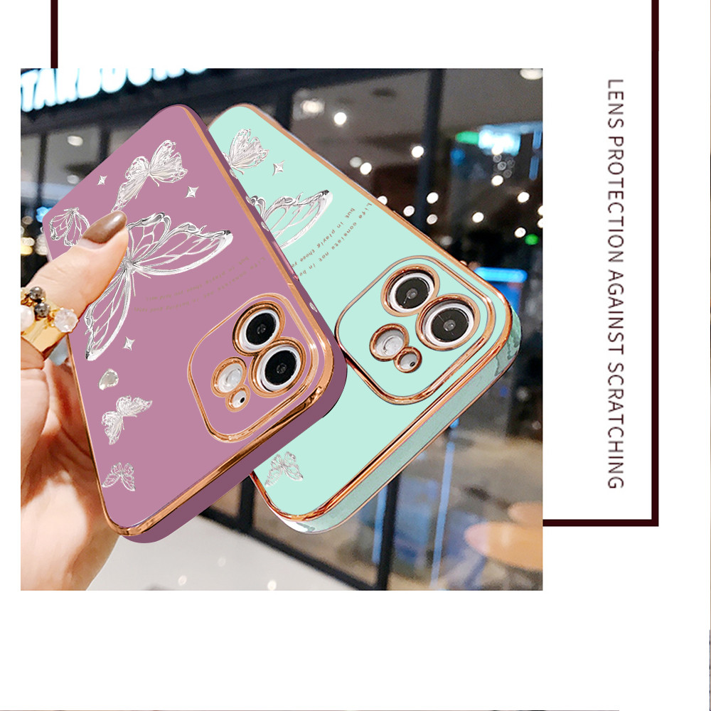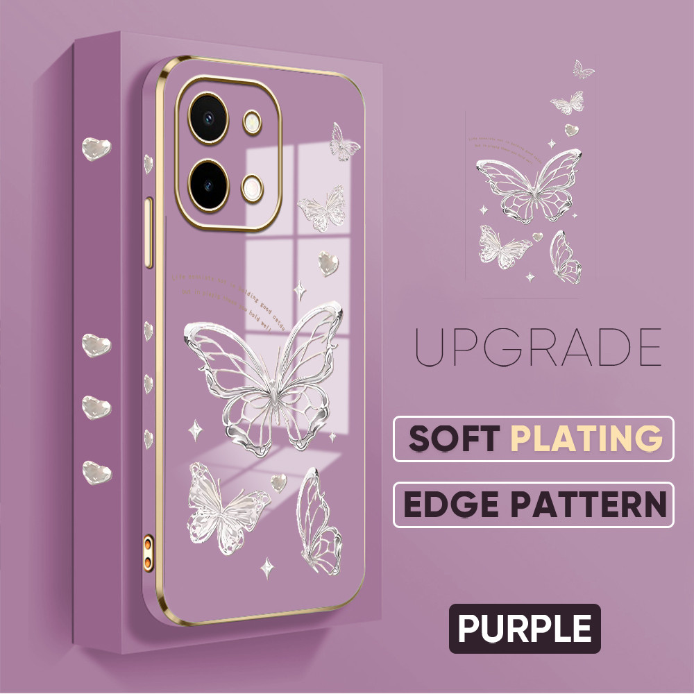 Casing Kupu-Kupu Untuk For Vivo Y28 4G (Lanyard Gratis) Butterfly Square Edge Pattern Design Luxury Plating Phone Case Softcase Kesing 2348