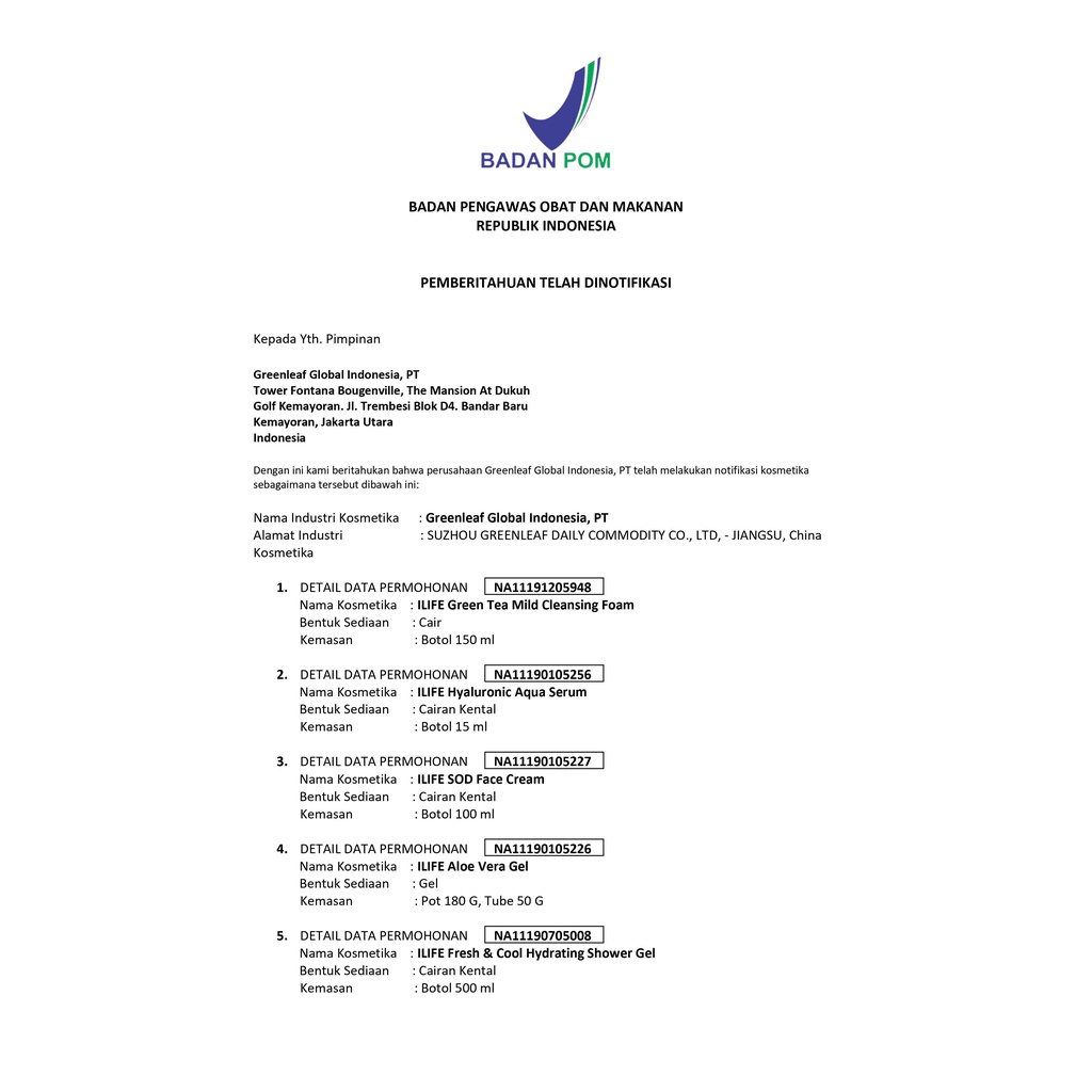 Cream Wajah Collagen SOD Face Cream(Superoxid Dismutase) 100 ml Greenleaf