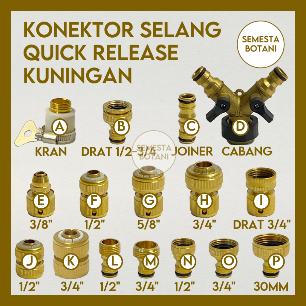 Konektor Selang Air Quick Release Kuningan 3/8 1/2 5/8 3/4 inch