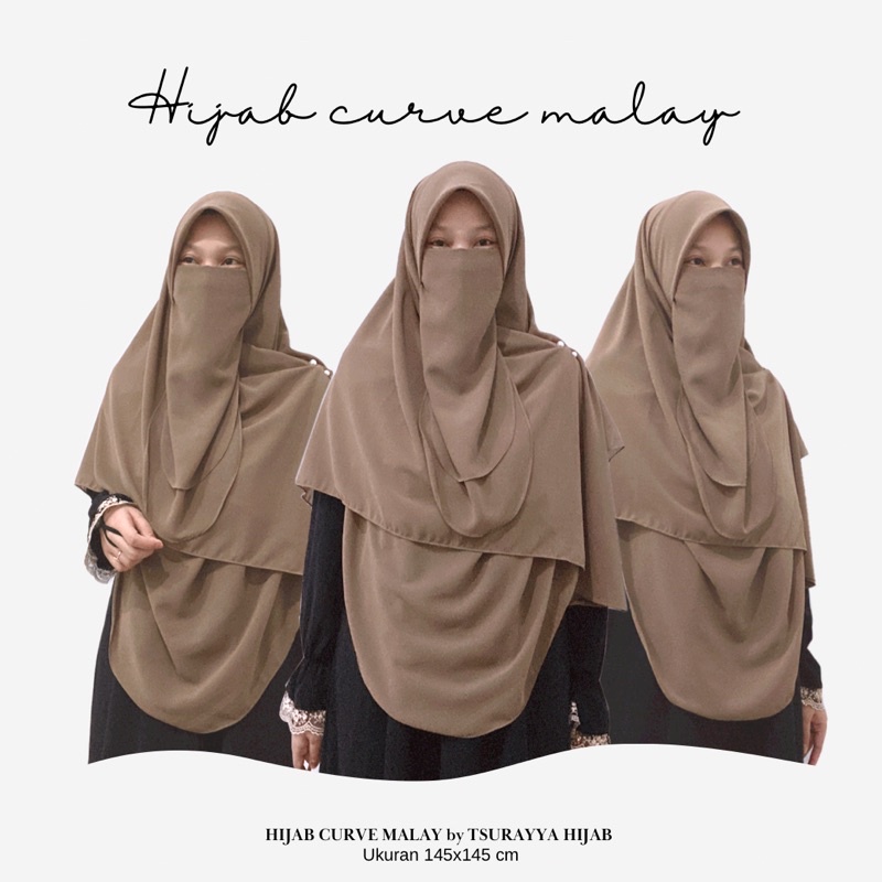 Tsurayya - Hijab Set Cadar/Saja(tanpa cadar) Hijab Segiempat Curve Malay 145X145 / Segiempat Oval Ceruty Babydol