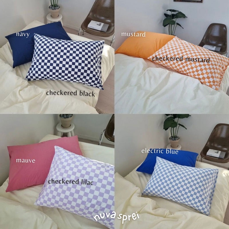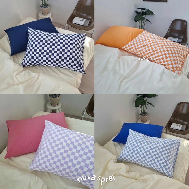 NUVA checkered pillow case | sarung bantal motif checkered | sarung bantal aesthetic | kamar korea