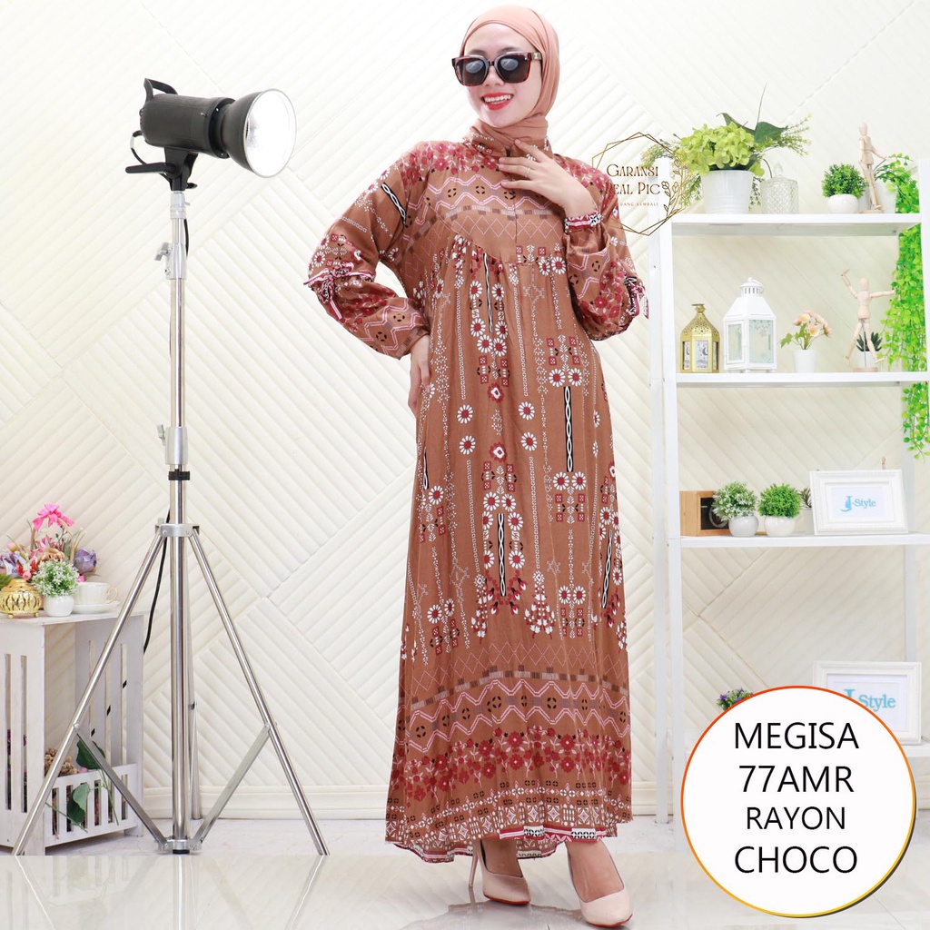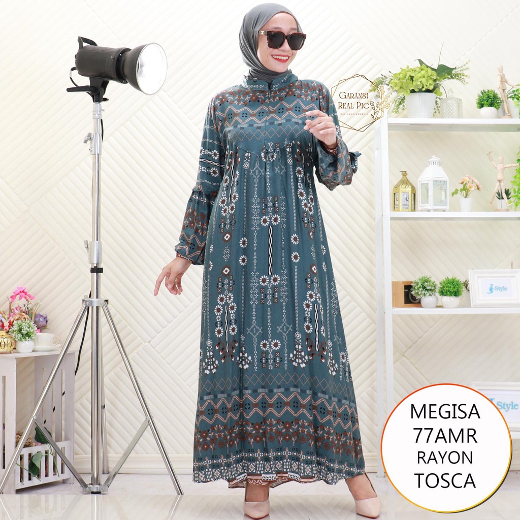 Megisa Gamis Rayon Motif Lengan Balon Busui Friendly