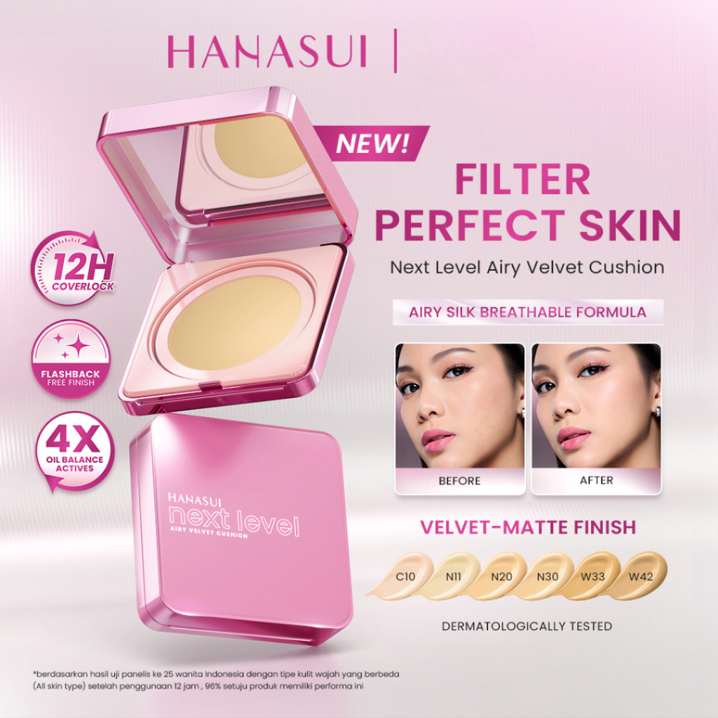 HANASUI Next Level Airy Velvet Cushion | Cushion Ringan, Pori Halus, SPF50+