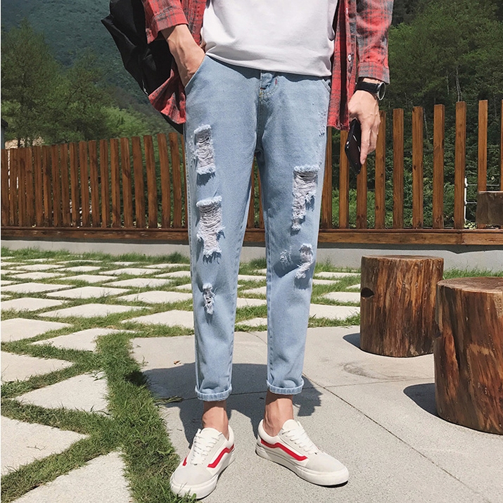 Celana Sobek Pria straight baggy celana robek jeans retro standar celana cutbray cowok korean style terbaru celana jeans koyak boyfriend oversize kasual celana jens kulot