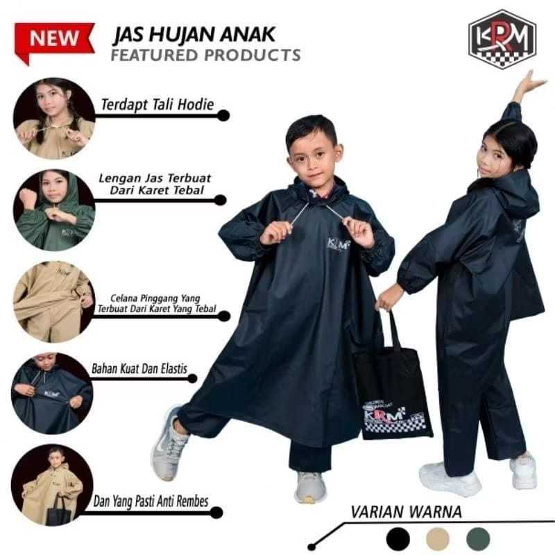 KRM PROMO Jas Hujan Anak Setelan PONCHO + CELANA Bahan PVC Kuat Tebal Anti Rembes Hitam/JAS HUJAN