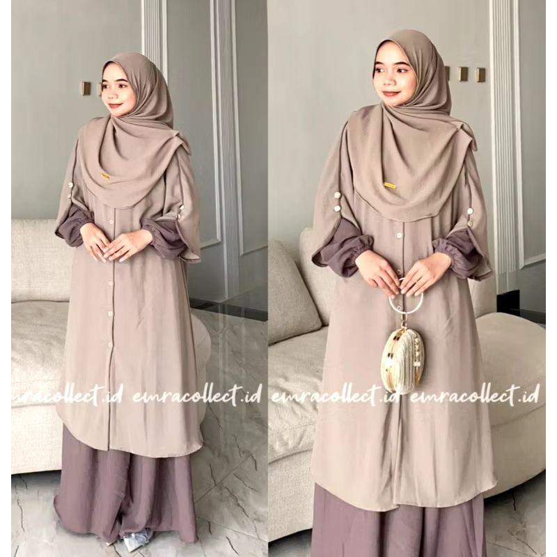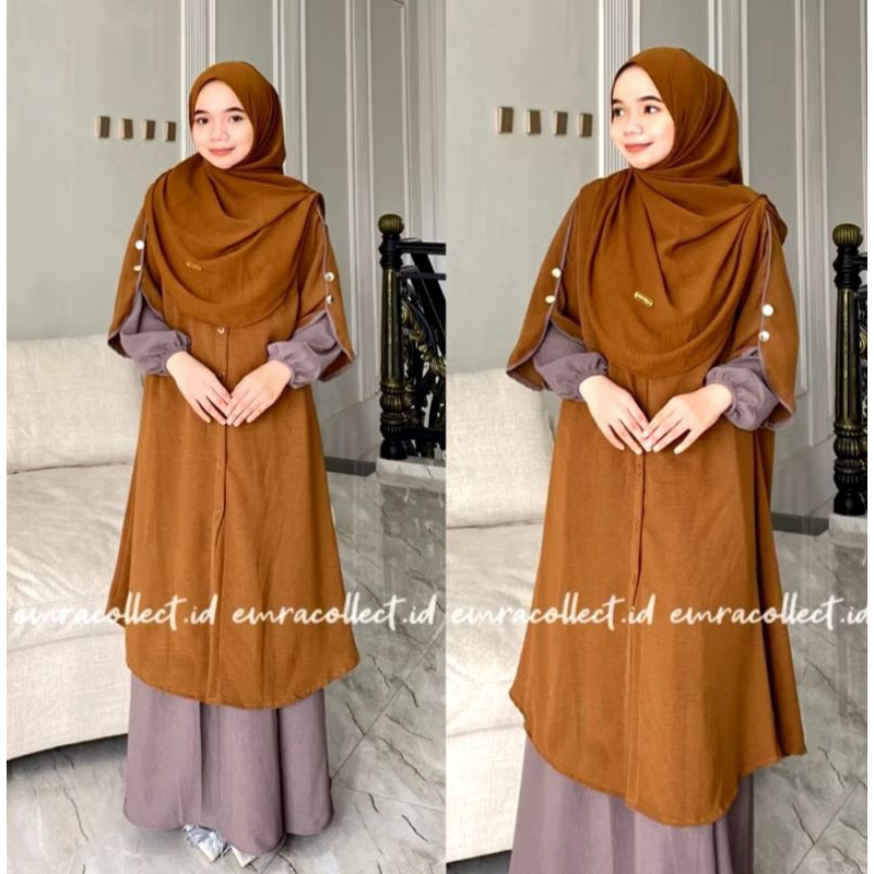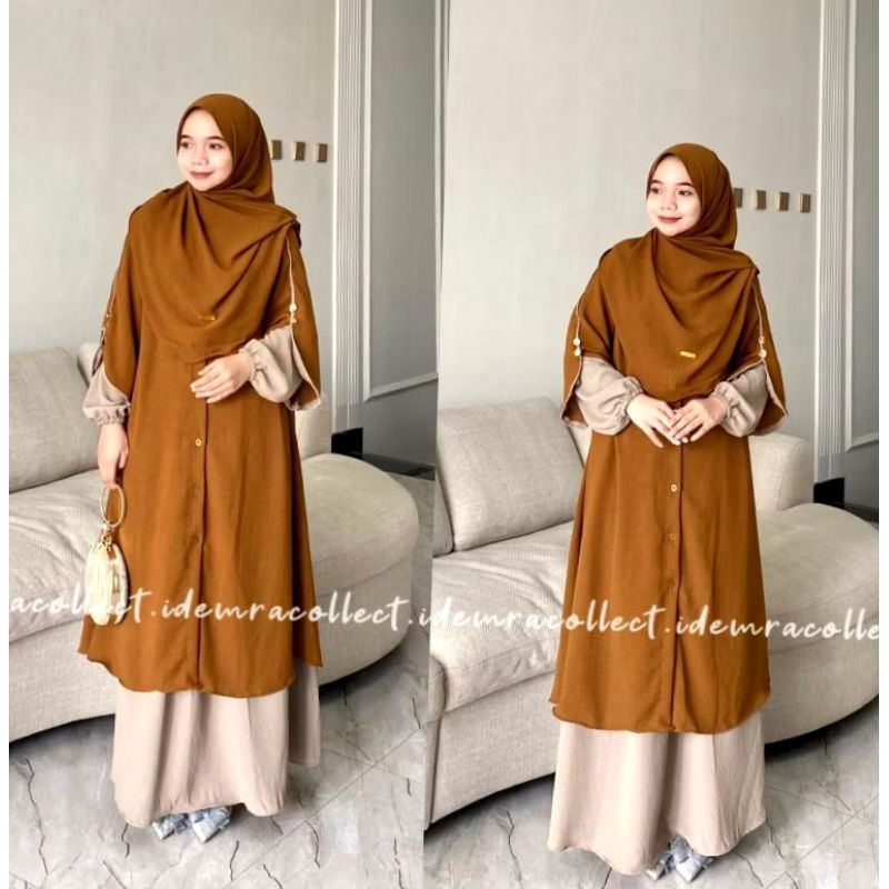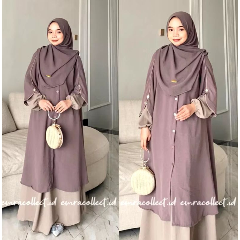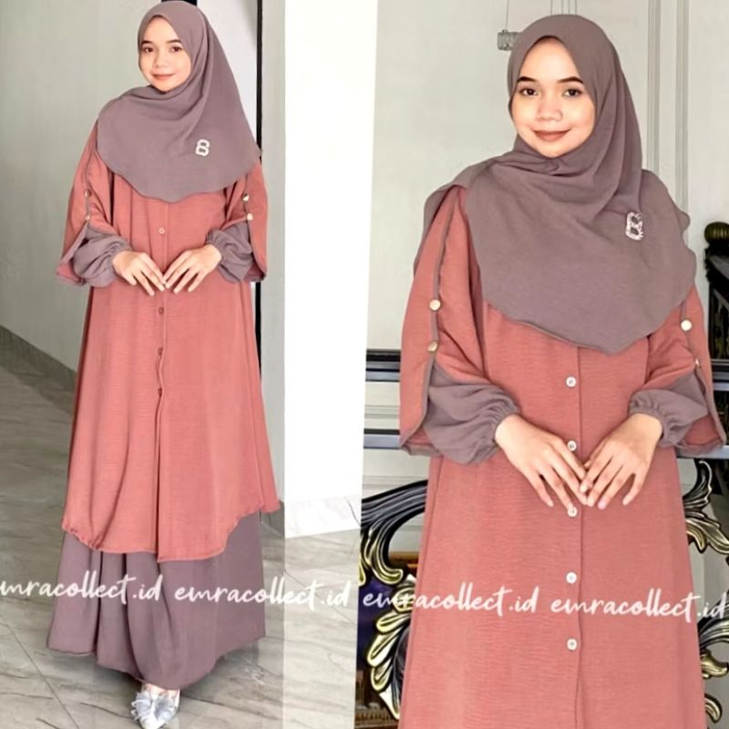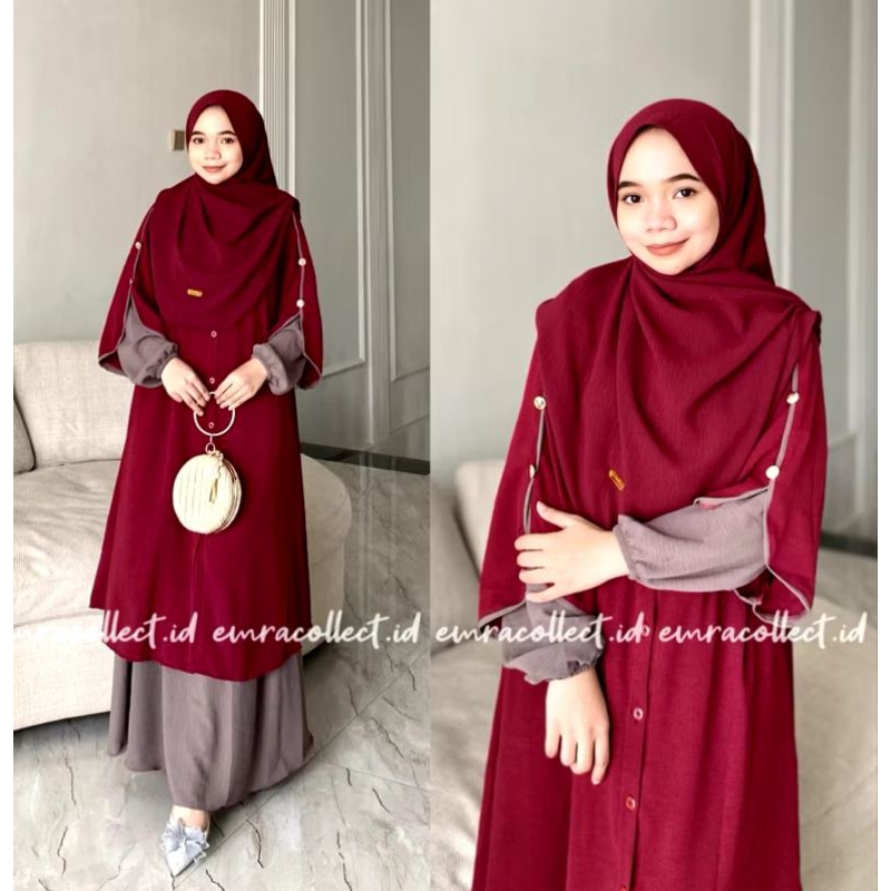 (READY) SAMIRA Rok One Set | Rok Tunik Syar'i Full Kancing | Set Rok Tunik Malaya Burgundy Set Pashmina Oval - AMEENAHIJAB