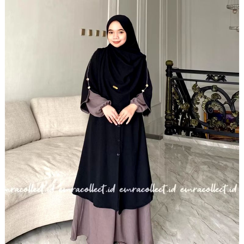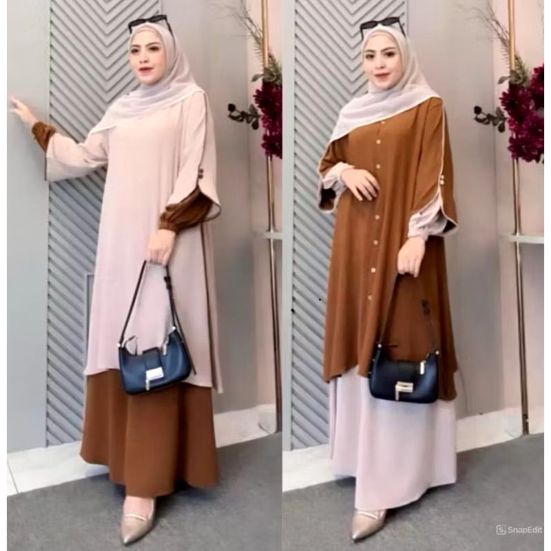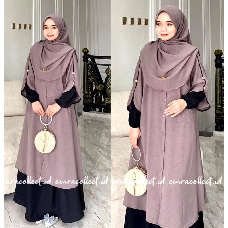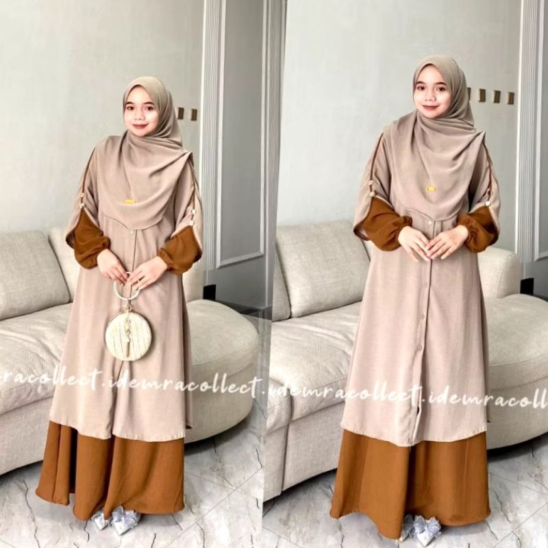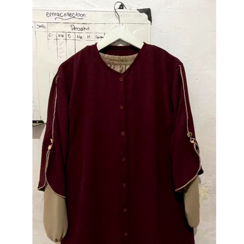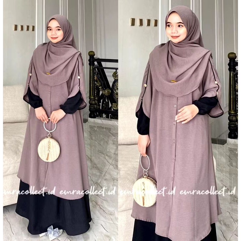 (READY) SAMIRA Rok One Set | Rok Tunik Syar'i Full Kancing | Set Rok Tunik Malaya Burgundy Set Pashmina Oval - AMEENAHIJAB
