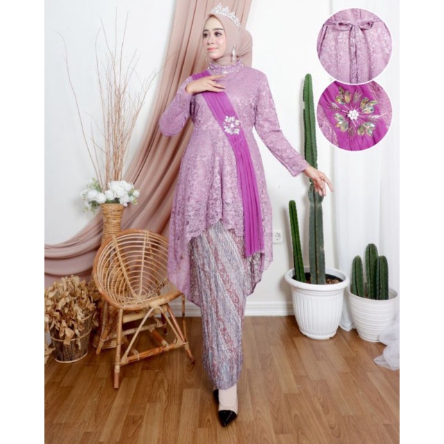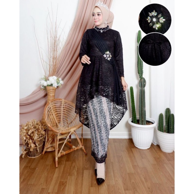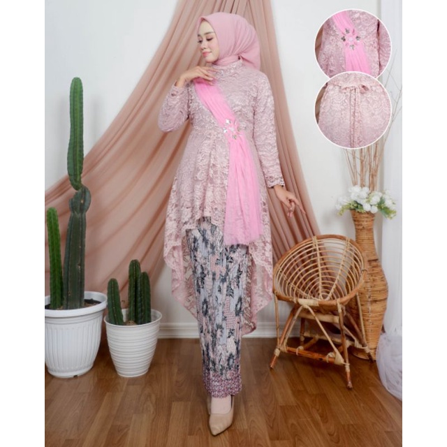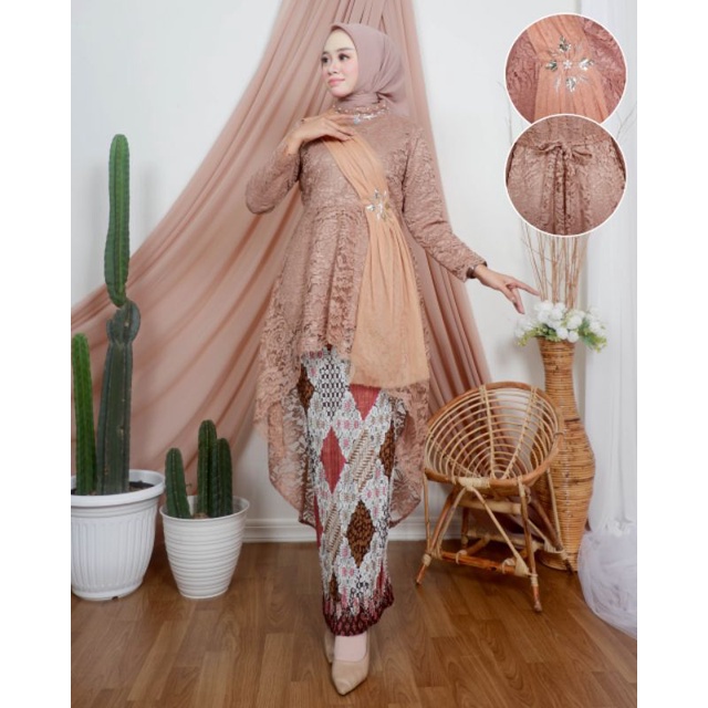 Setelan Kebaya Brukat Lesti mix rok plisket