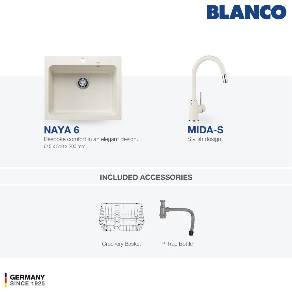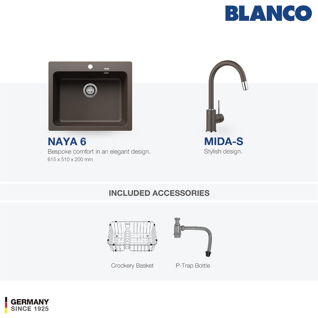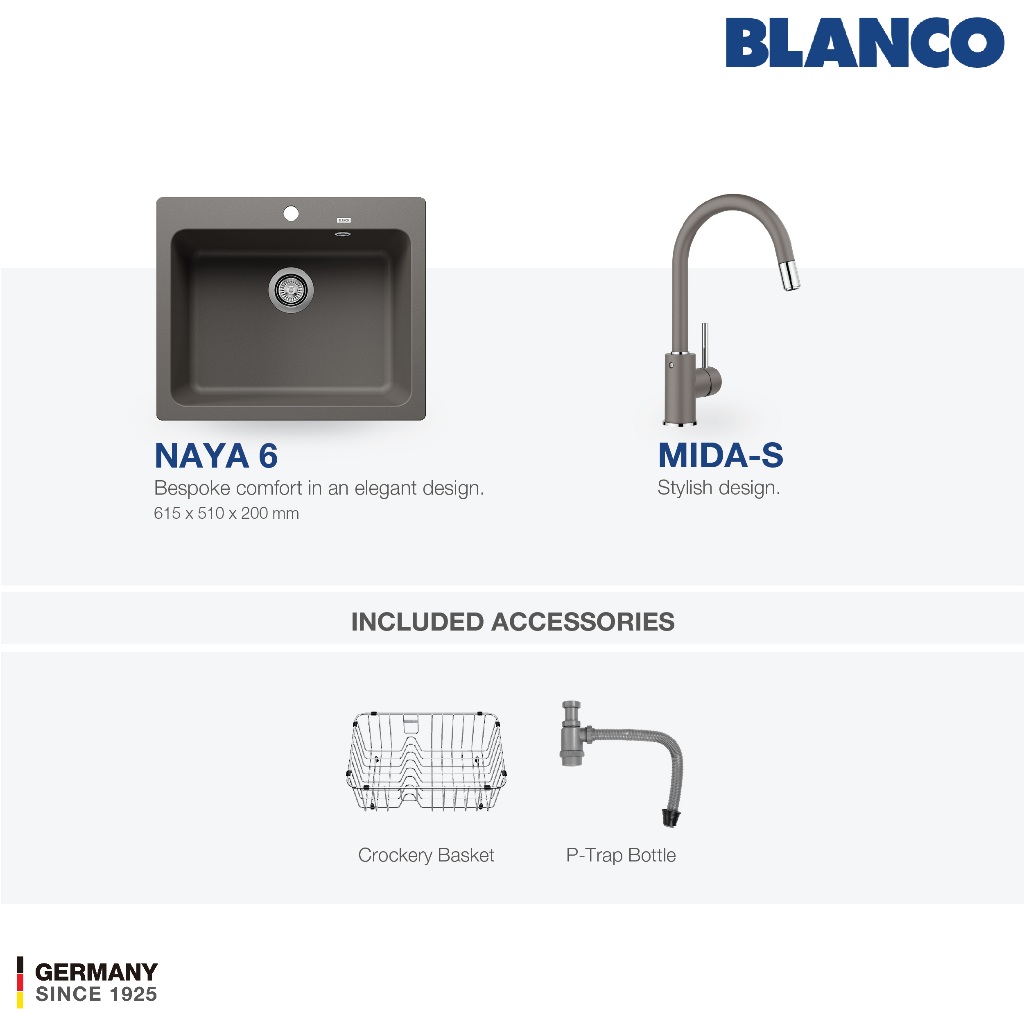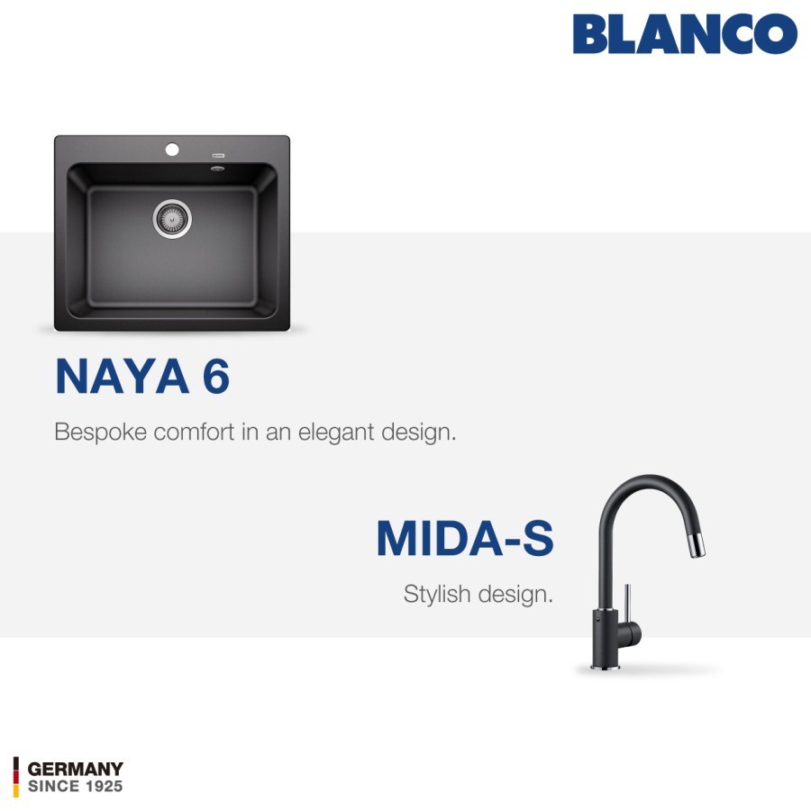 Kitchen Sink Bak Cuci Piring Granit 1 Lubang BLANCO Silgranit NAYA 6 - Paket Kitchen Sink dan Keran Dapur BLANCO MIDA - Pemasangan Topmount Undermount