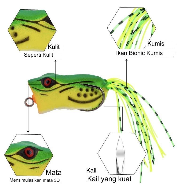 Umpan Soft Frog Semi Popper Mini 4cm/7gram, Umpan Soft Frog With Skirt hsaf - 345