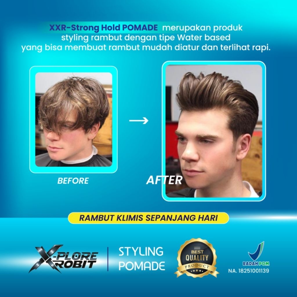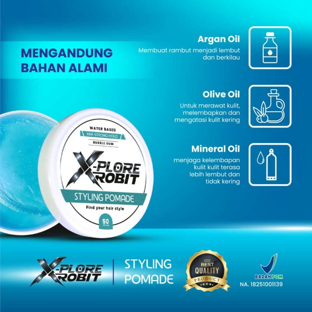 Pomade Waterbased 60 Gram X-Plore BPOM Strong Hold Medium