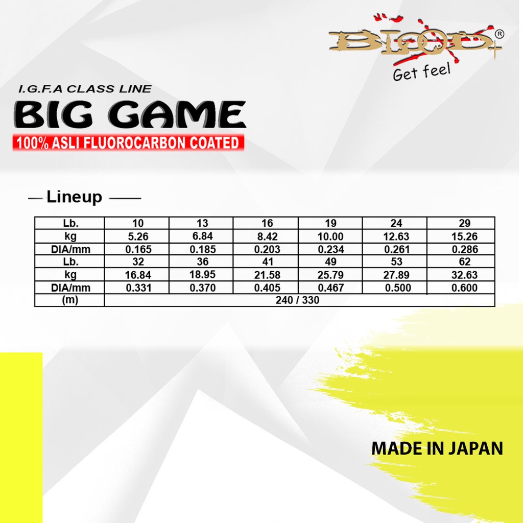 SENAR PANCING FLUOROCARBON BLOOD BIG GAME FISHING LINE JAPAN 240/330YDS