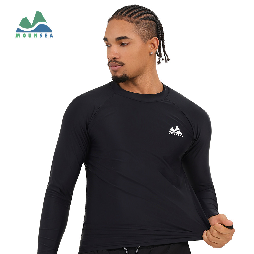 Mounsea Men's Swimwear Suit Cool Black Anti-UV Trunks Long Sleeve 2-piece Outfits