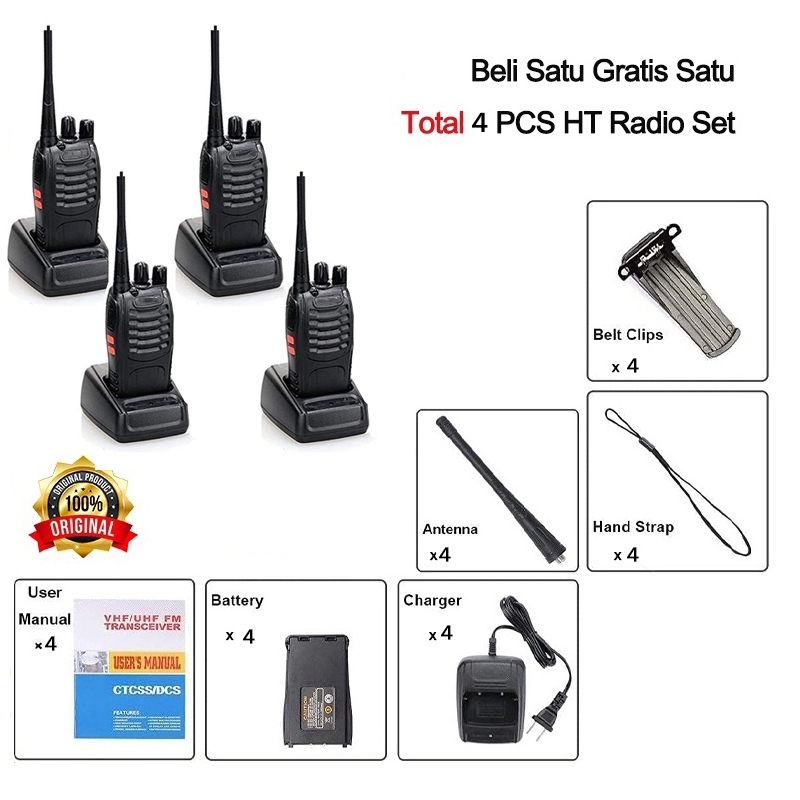 4PCS HT 888s Handy Talky 888S 10km(Max) 2800mAH Radio Komunikasi Uhf Walky Talky 2 Units Walkie Talkie Ht Murah Walkie Talkie Anak