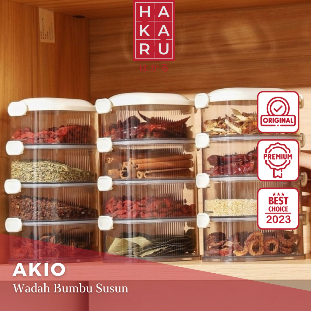 【HAKARU】AKIO Kotak Makanan Bumbu Dapur Stackable Tumpuk 2 Bawang BPA FREE Kontainer Kulkas Cabai Rak Sekat Susun Sayur Buah Food Grade Food Container Daging Transparan