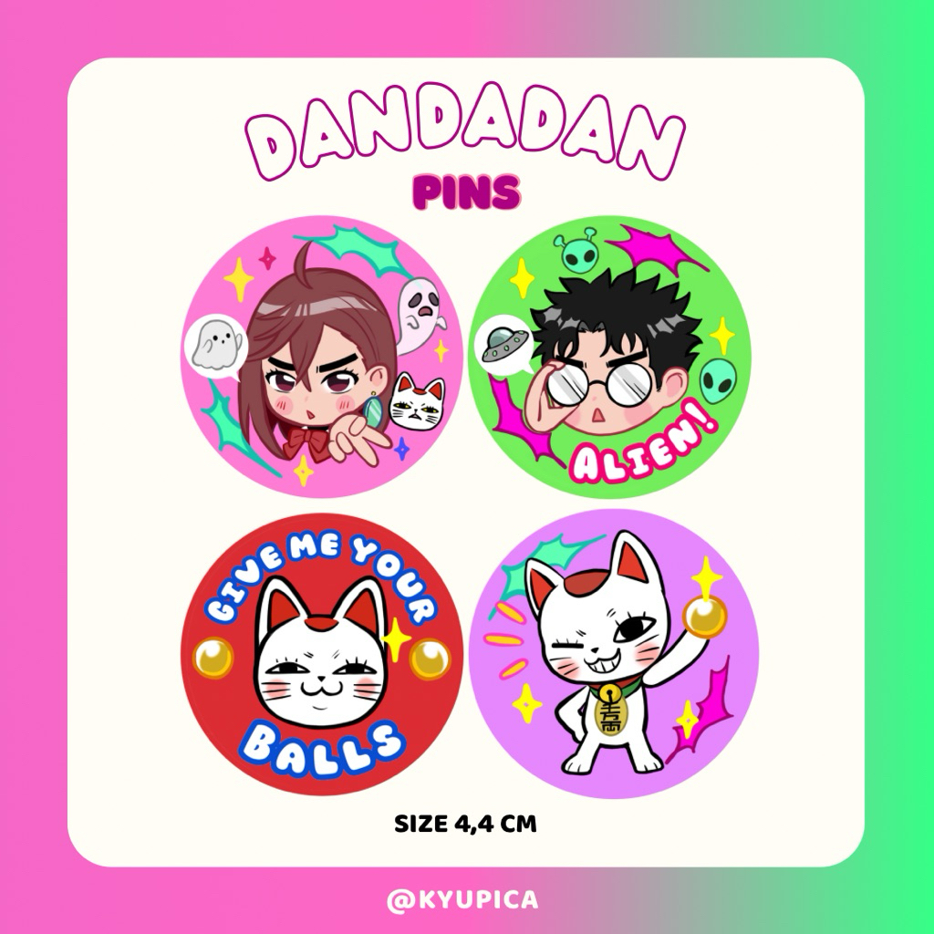 Dandadan Characters Pins (Momo, Okarun, Turbo Granny) | fanart by kyupica