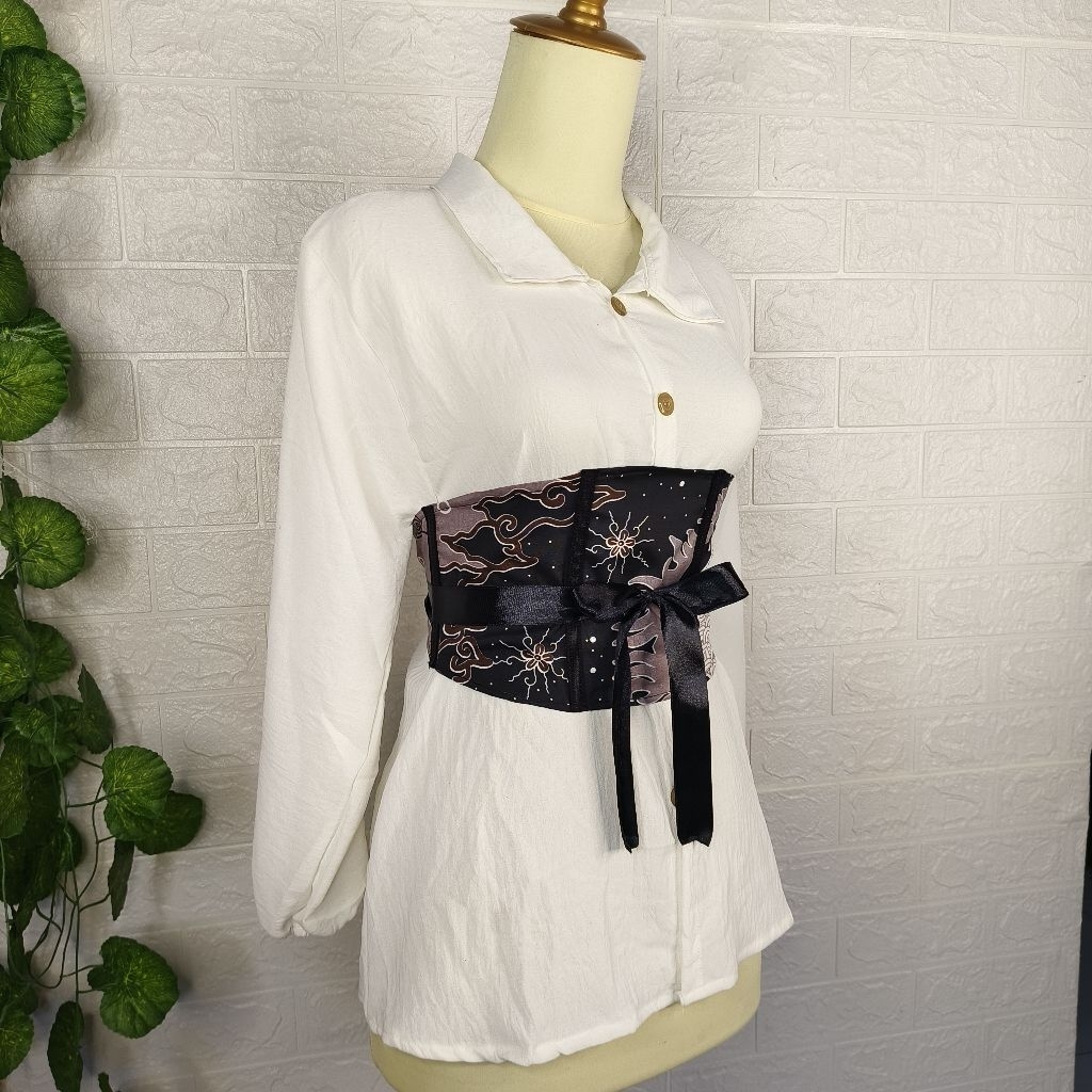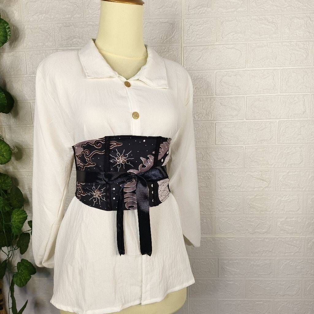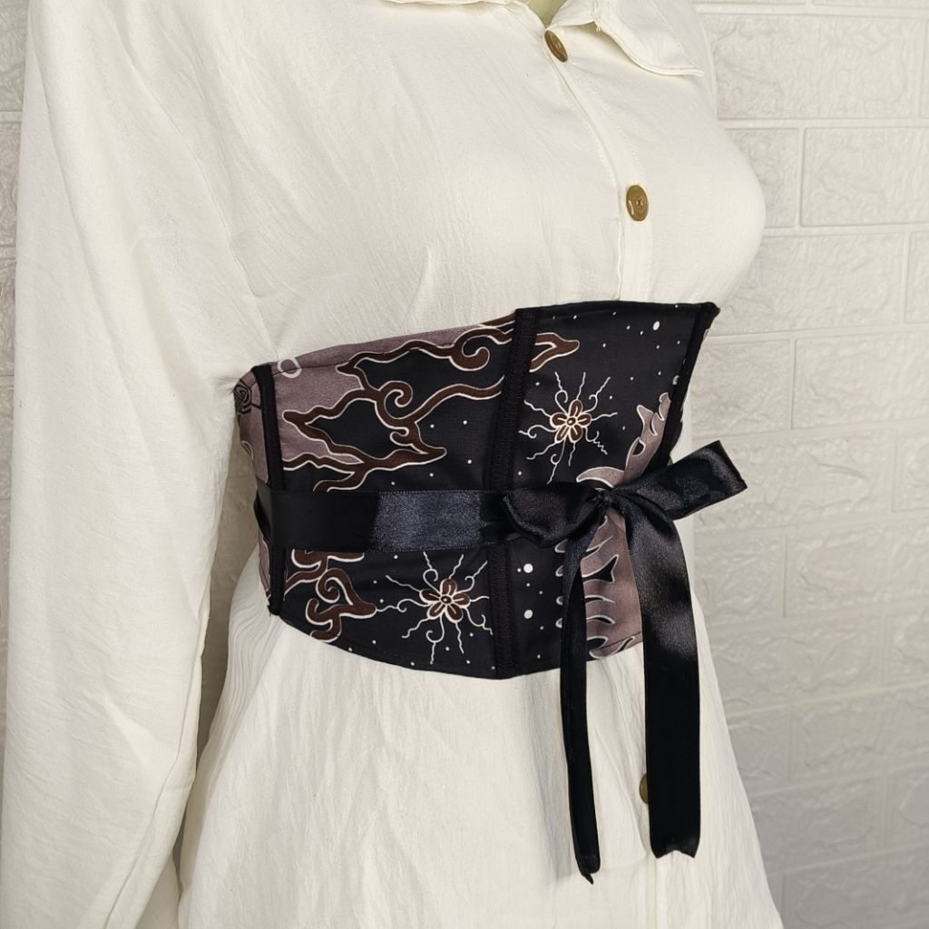 OBI Belt Korset BATIK kekinian ala Korean style dengan tali pita satin_OBY BATIK