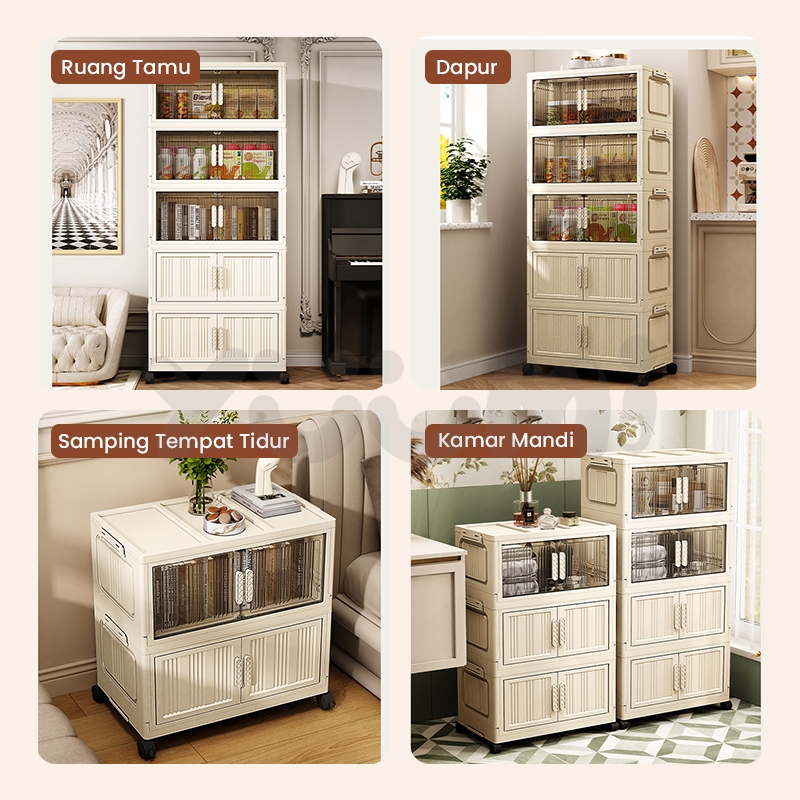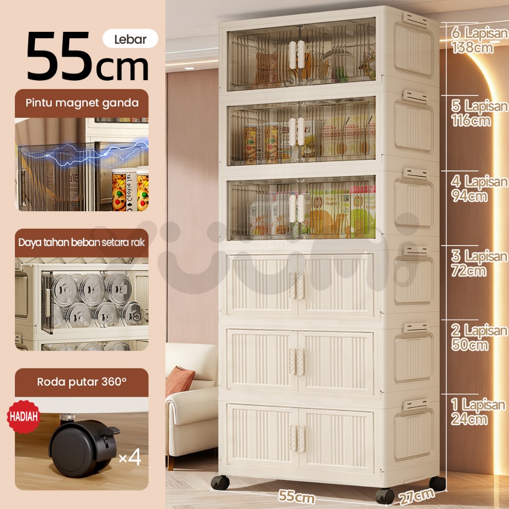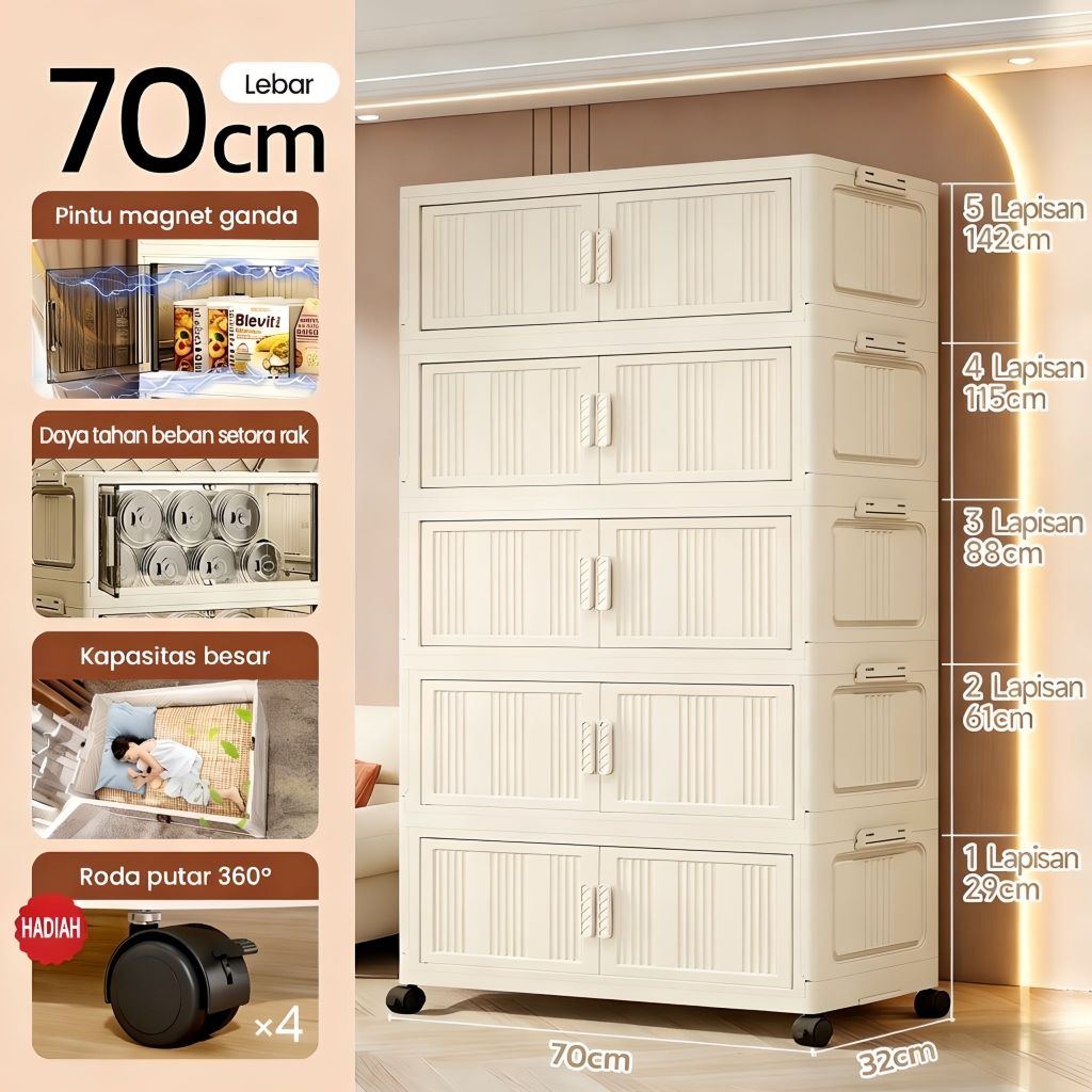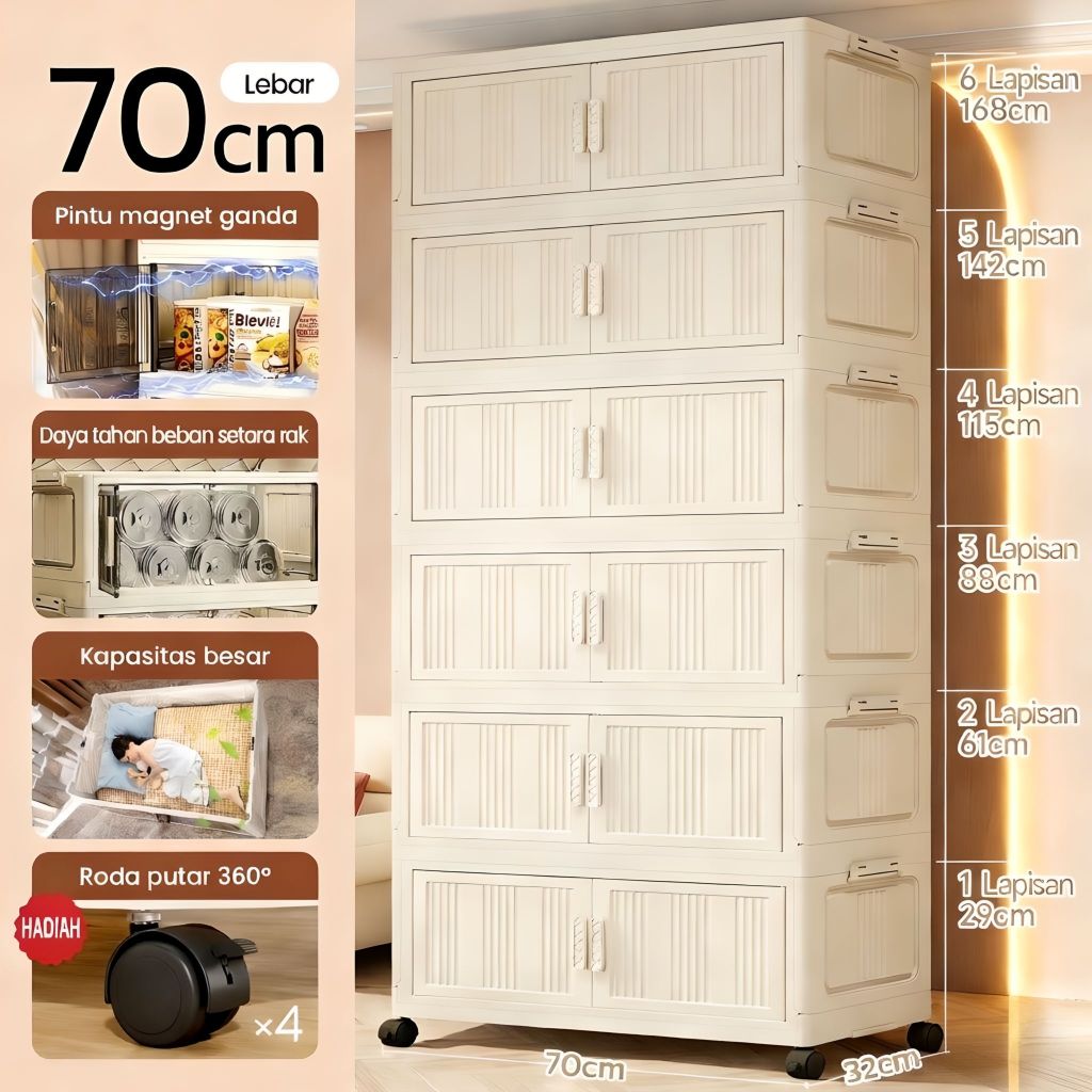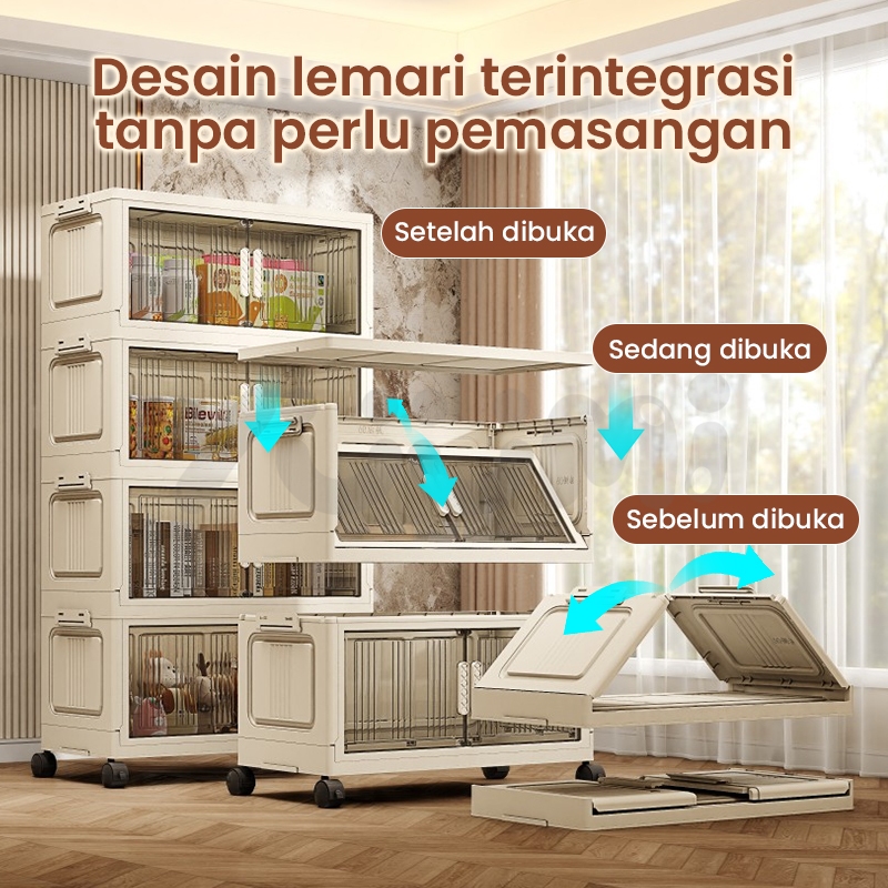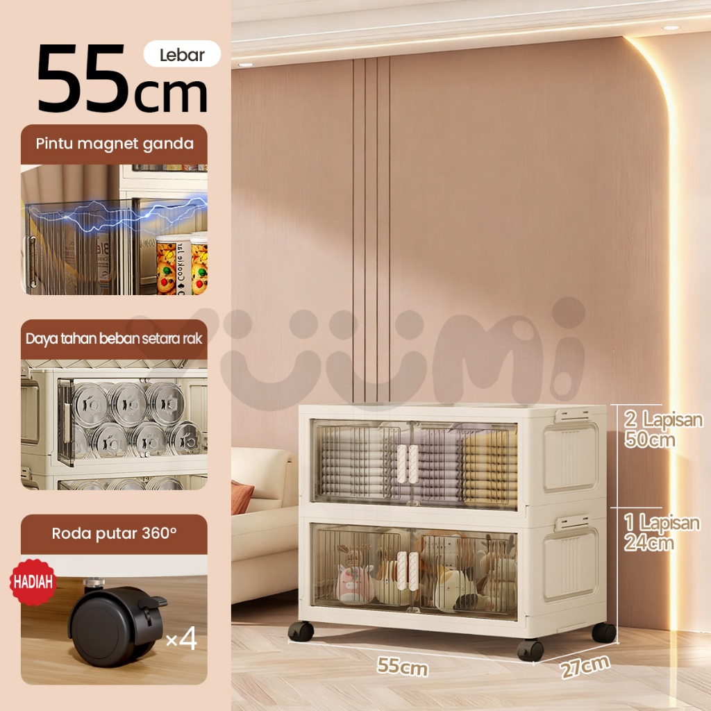 Yuumi Lemari Plastik Susun Besar - Lemari Pakaian Anak & Bayi, Rak Baju Multifungsi, Organizer Hemat Ruang, Katrol Senyap, Anti Debu